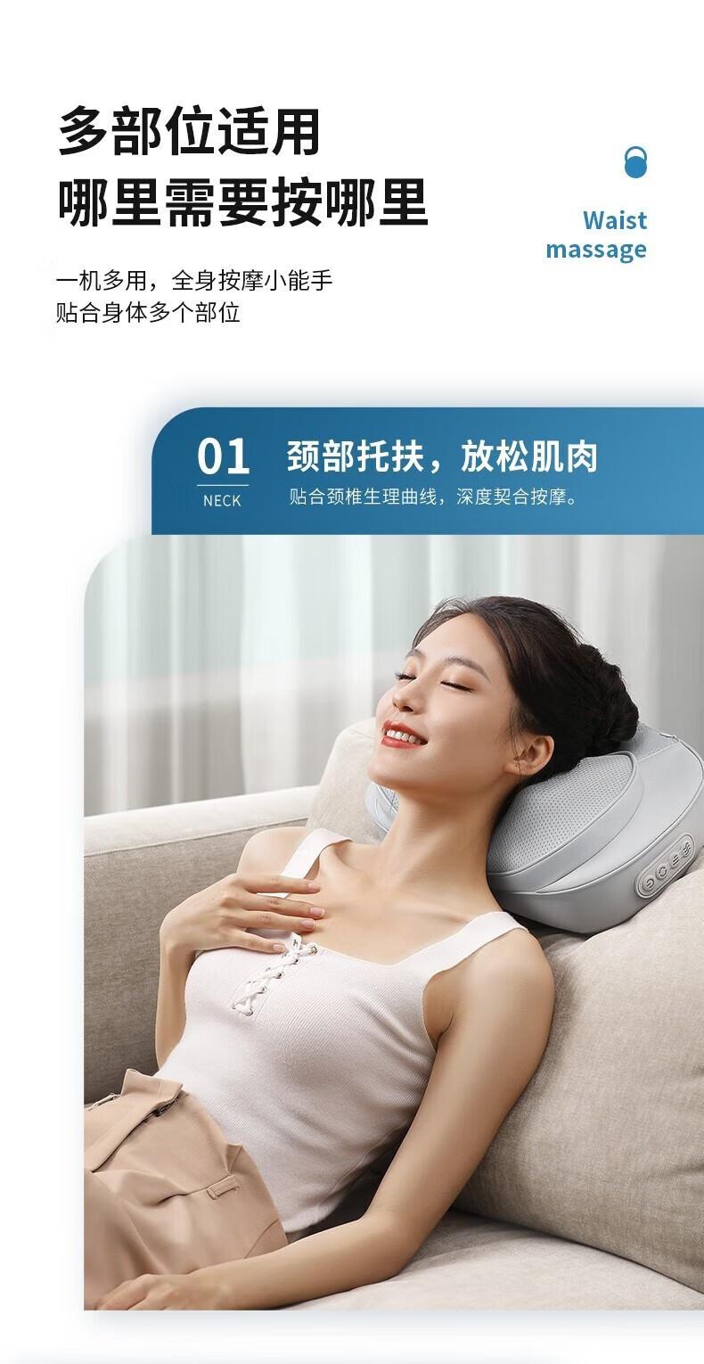 K205 Massage Pillow [Modern Grey] Third Speed Adjustment + Kneading Massage + Red Light Hot Compress + Whole Body Universal