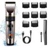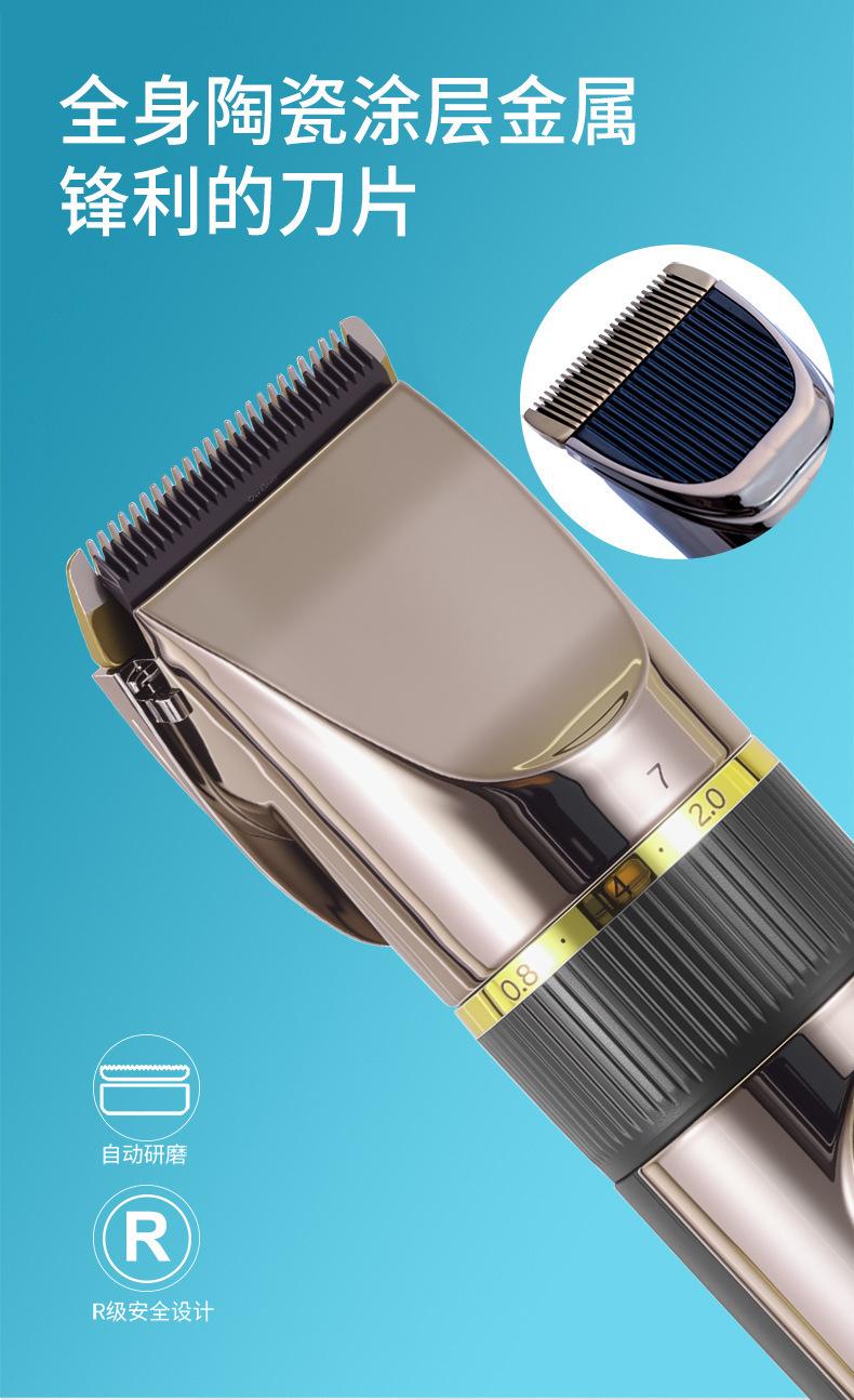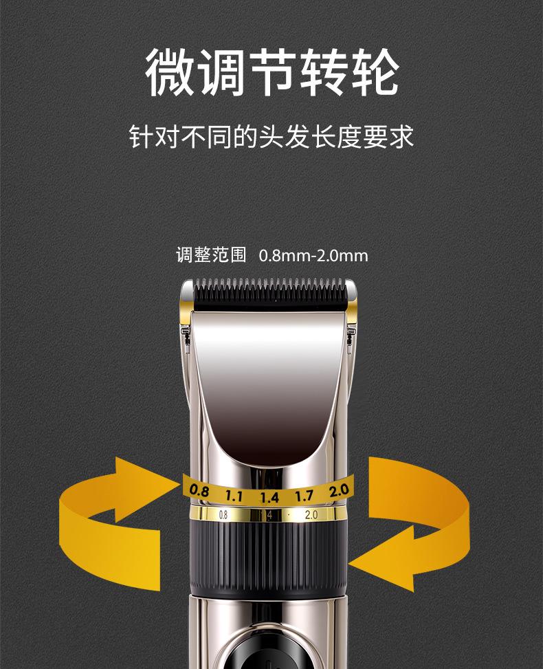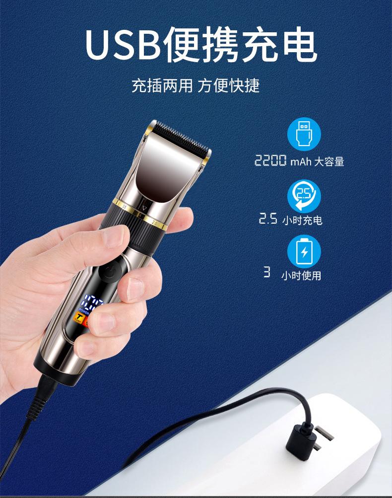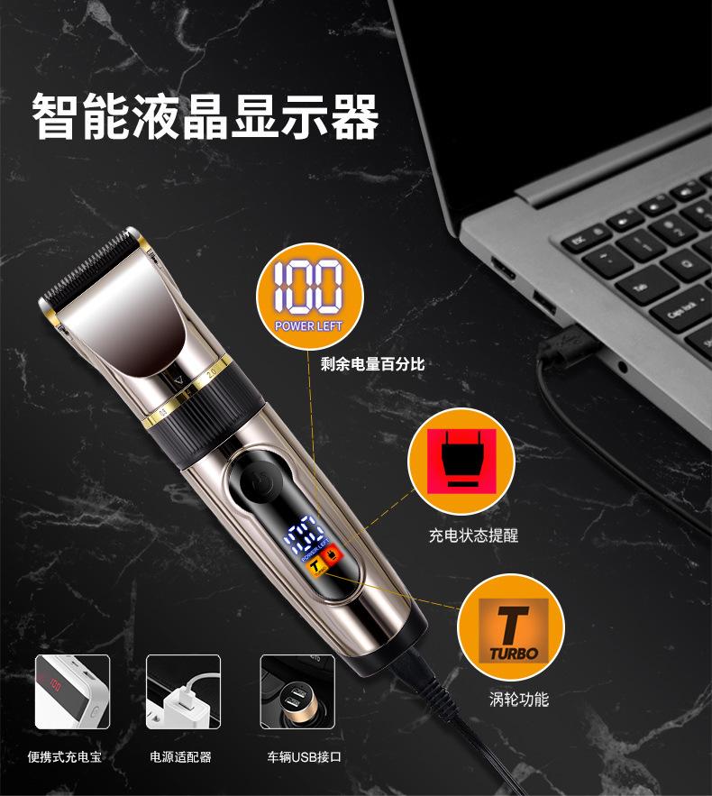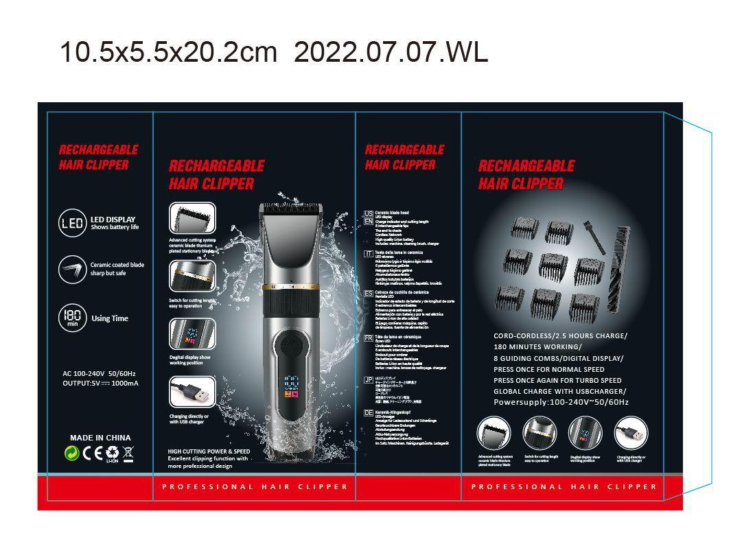 Puntos de venta del producto: Pantalla digital LED LCD, Lavado con agua IPX6, Batería de litio, Cortapelos de alta potencia, Función de aceleración de 2 velocidades, Carga y enchufe, Cabezal de corte de ajuste fino rotatorio de tres velocidades (0.8/1.4/2MM), Bajo ruido, Tipo RCuchillaDiseño de protección de esquinas redondeadas. Longitud del cable 1M