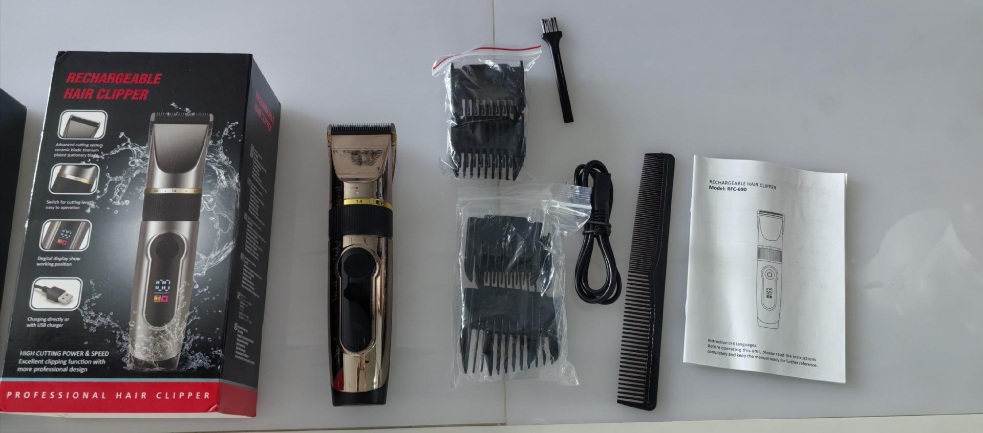 Accesorios del producto: Cuerpo*1+Cable de carga USB*1+Enchufe*1+Manual de instrucciones en idioma extranjero*1+ 8 peines guía (1/2/3/6/9/12MM)+Cepillo de limpieza*1.+Aceite lubricante*1
