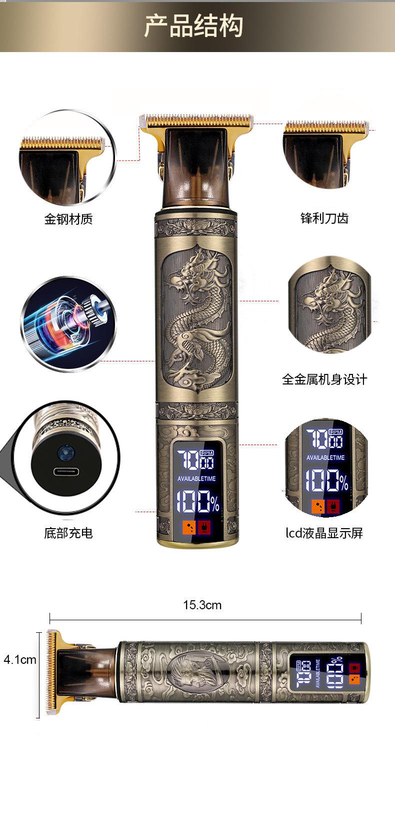 Cortadora de pelo eléctrica con cabezal de aceite transfronterizo, cabezal de afeitado, cortadora de pelo eléctrica, cortadora de pelo eléctrica con tallado T9, cabezal de Buda con pantalla digital, cortadora de pelo eléctrica