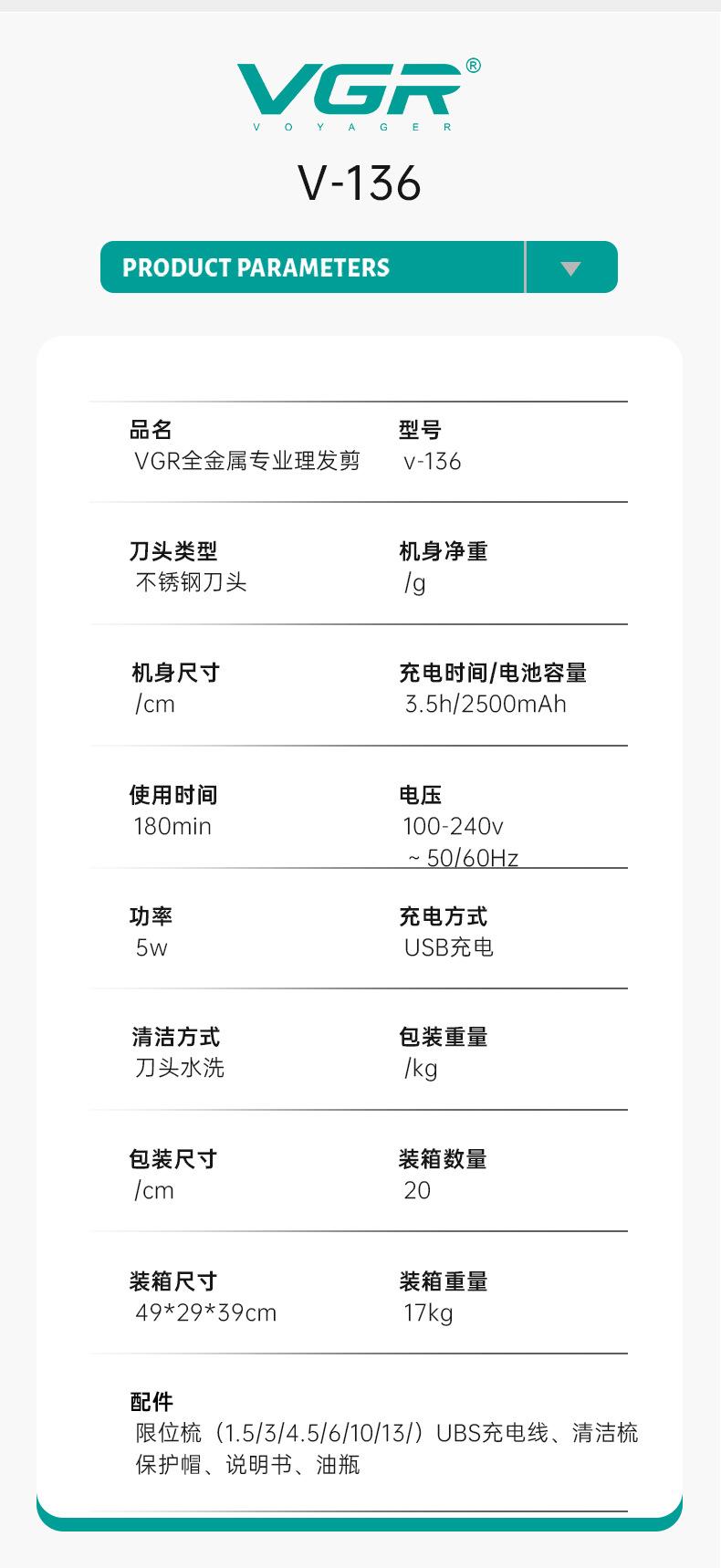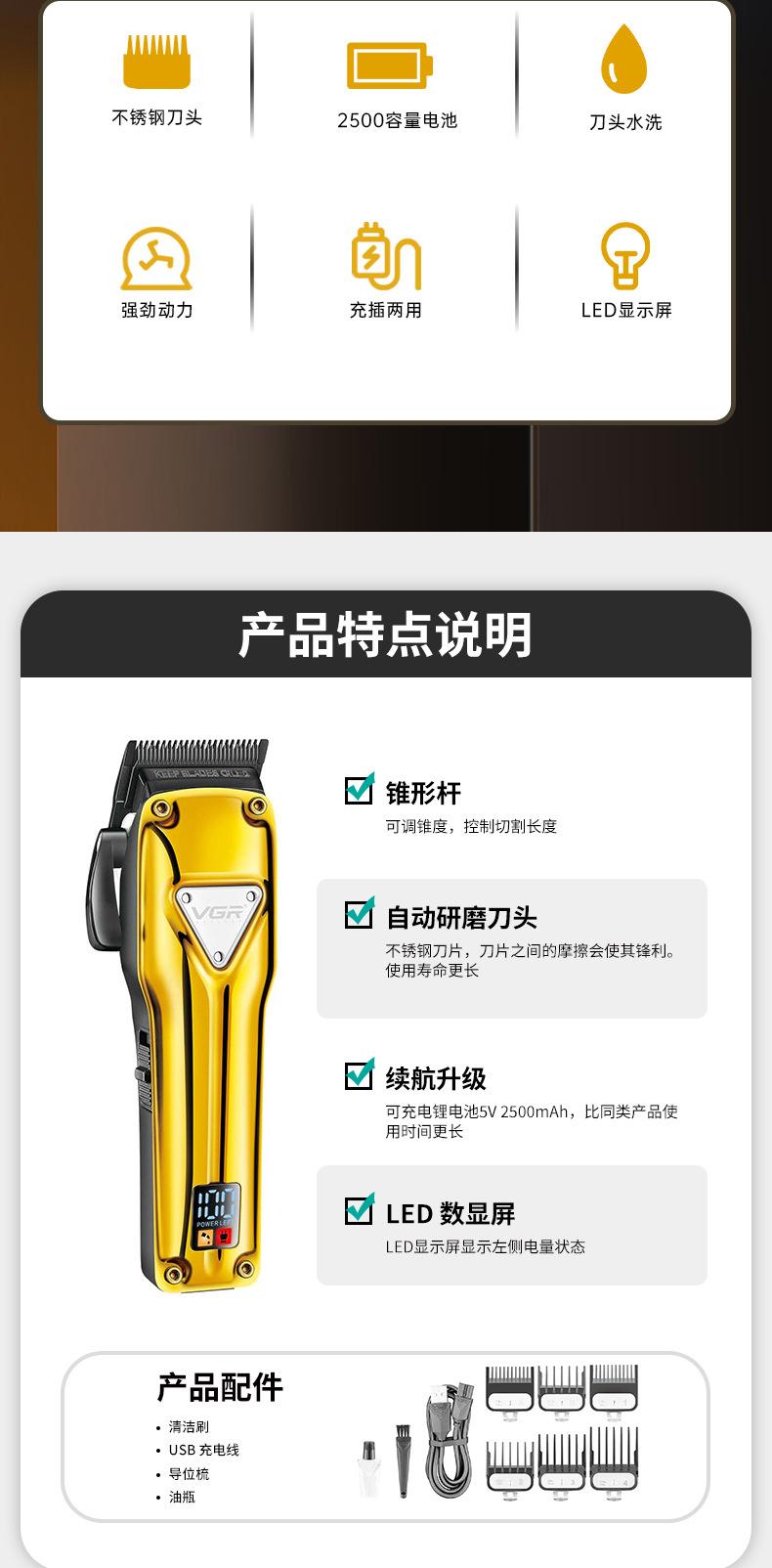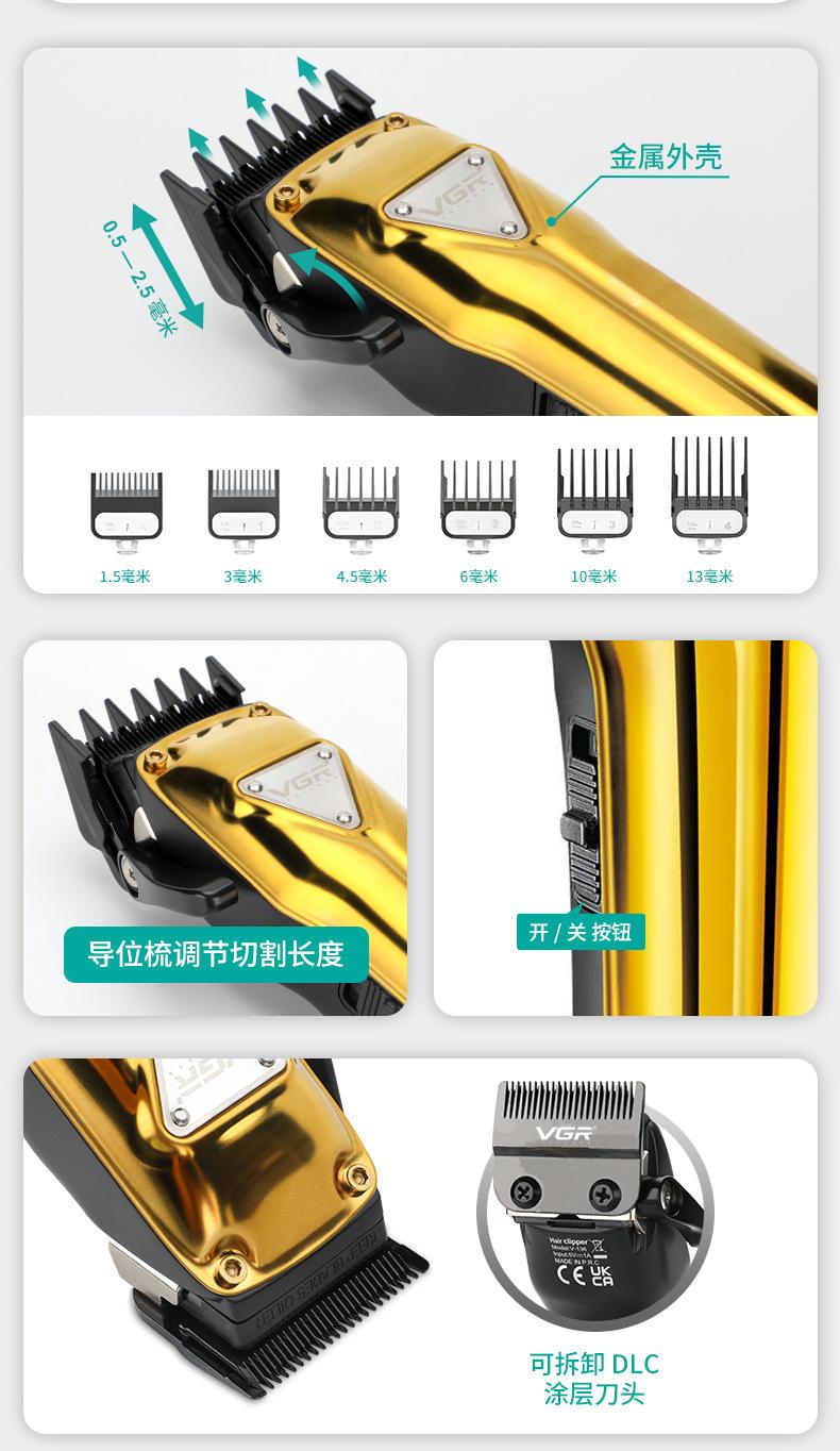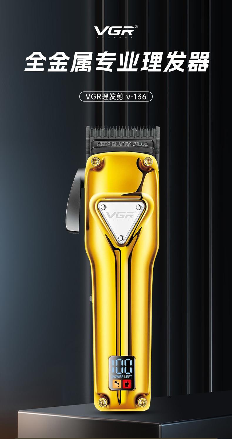 VGR136 Cortadora de pelo eléctrica con cabezal de aceite para peluquería transfronteriza, de metal, para hombres, para uso doméstico