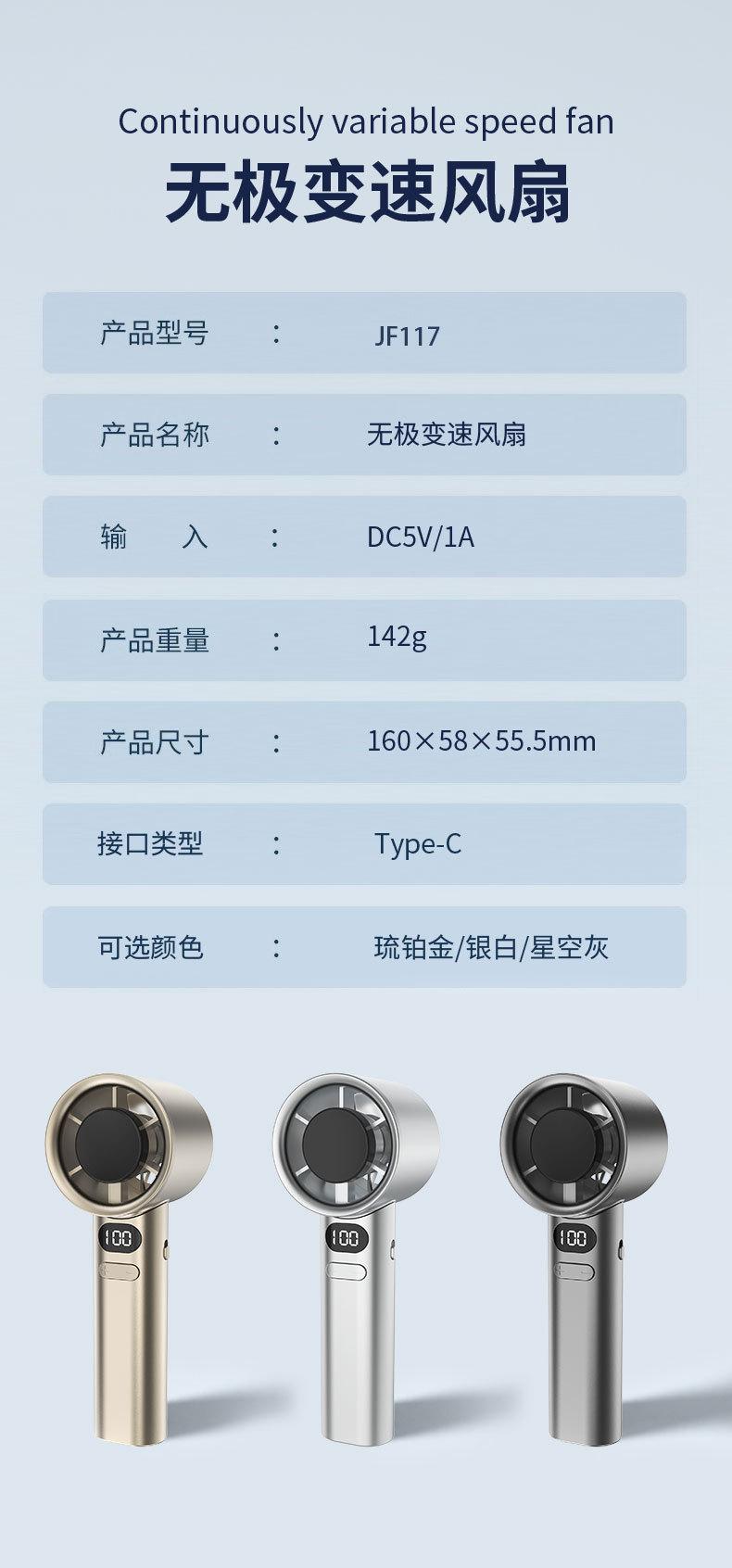 Nombre del producto: Ventilador de mano con velocidad infinitamente variable