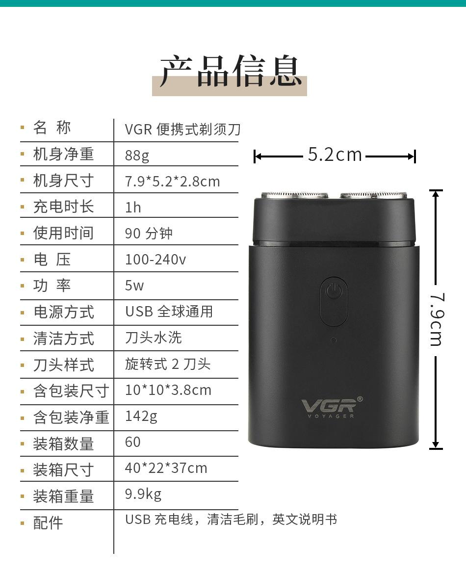Afeitadora eléctrica VGR341, afeitadora rotativa multifuncional para hombres, afeitadora recargable con artefacto para cabeza descubierta, nuevo producto