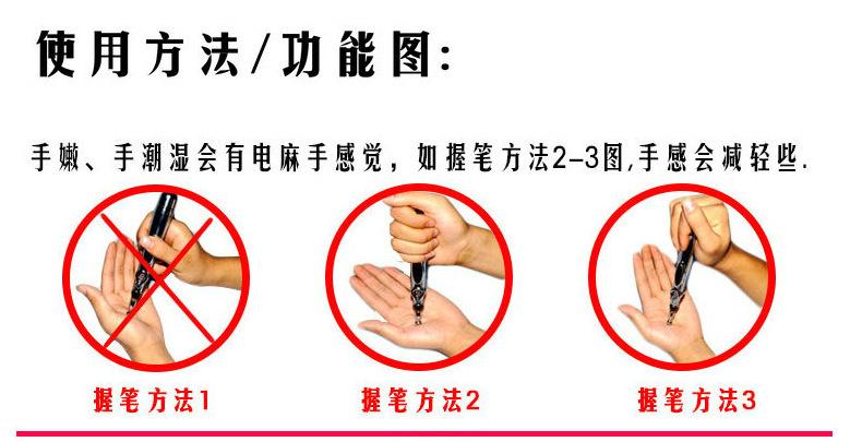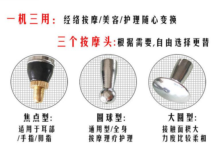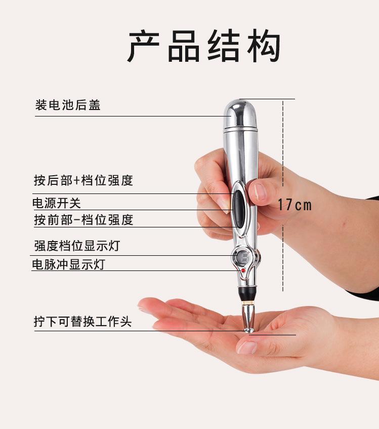 Accesorios del producto: Pluma de acupuntura, equipada con una batería No. 5, una crema para el rostro con energía de trece horas, un manual de instrucciones, una sonda de meridianos y una unidad principal con una sonda de meridianos