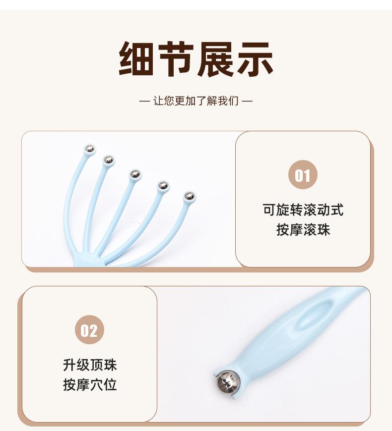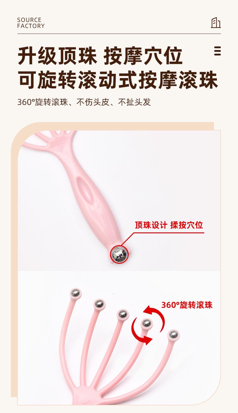 Masajeador de cabeza con bola de acero de cinco garras, agarre para el cuero cabelludo, bola de pulpo, masajeador de cabeza directo de fábrica