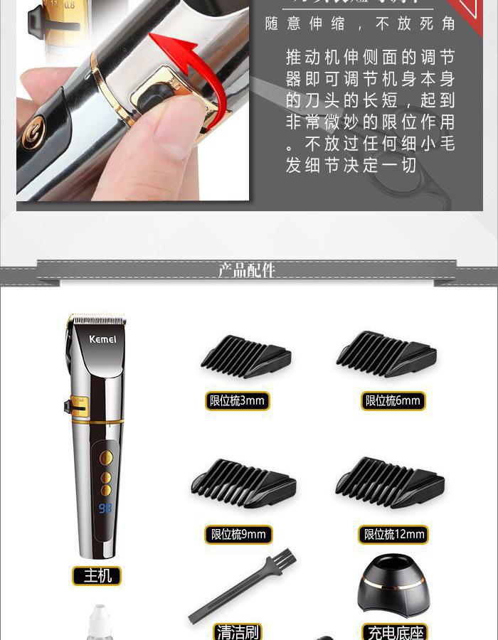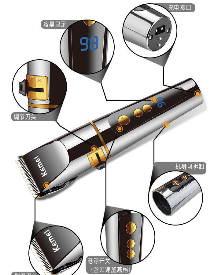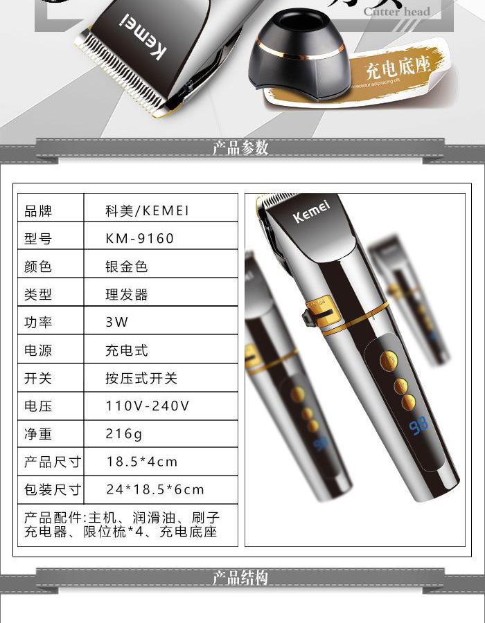 Cortapelos eléctrico Comey KM-9160 base de carga pantalla digital cortapelos eléctrico dedicado para salón de peluquería alta potencia