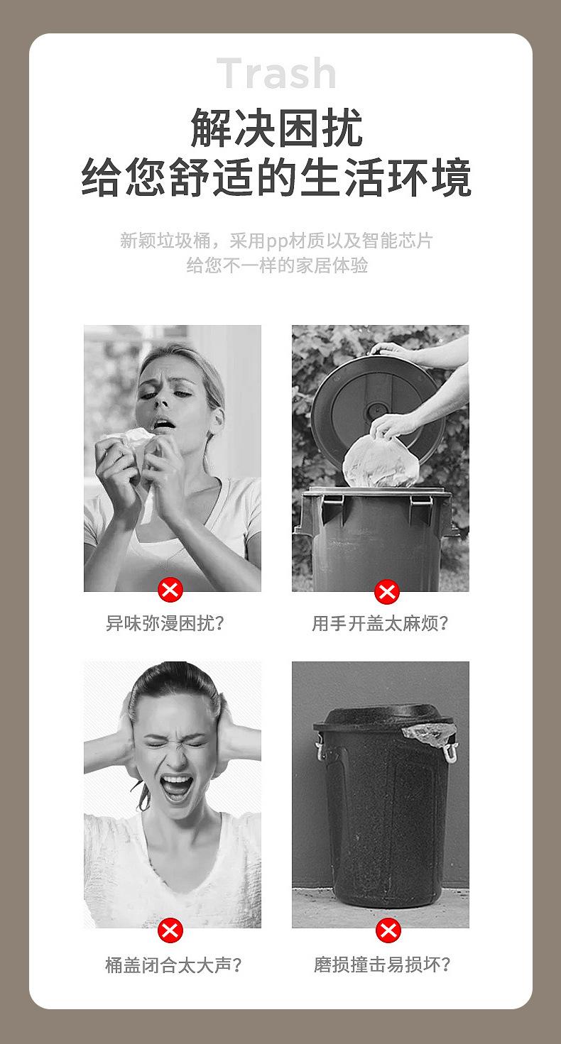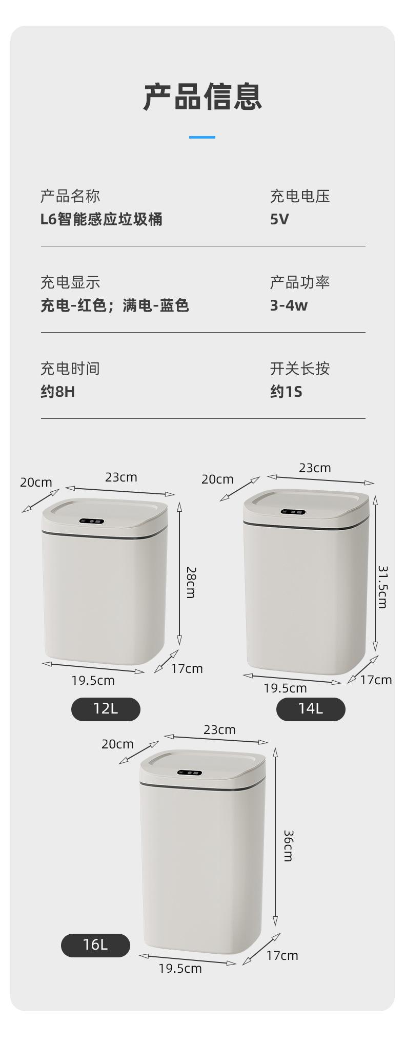 White gray, L6 trash can milky white single mode 12l, L6 trash can milky white single mode 14l, L6 trash can m...