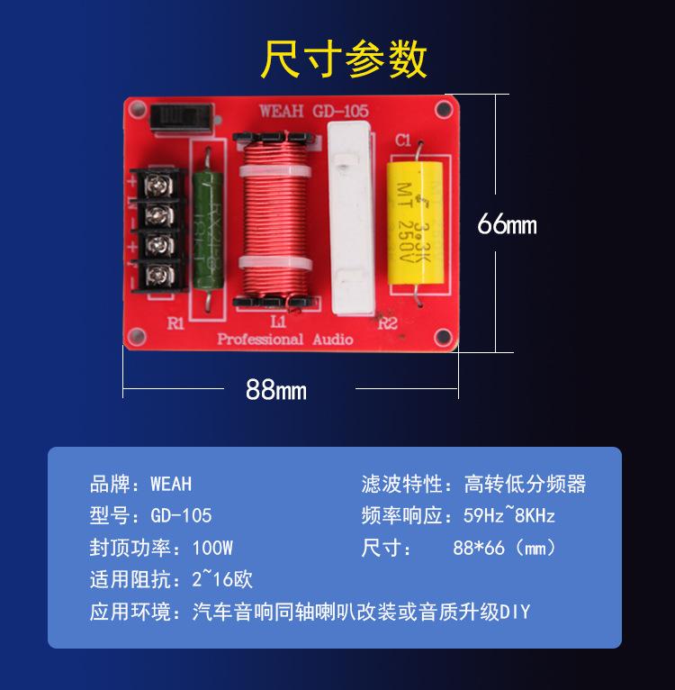 Herramienta para mejorar la calidad de sonido del altavoz de audio para automóvil Altavoz coaxial de audio para automóvil Crossover de mejora de graves GD-105