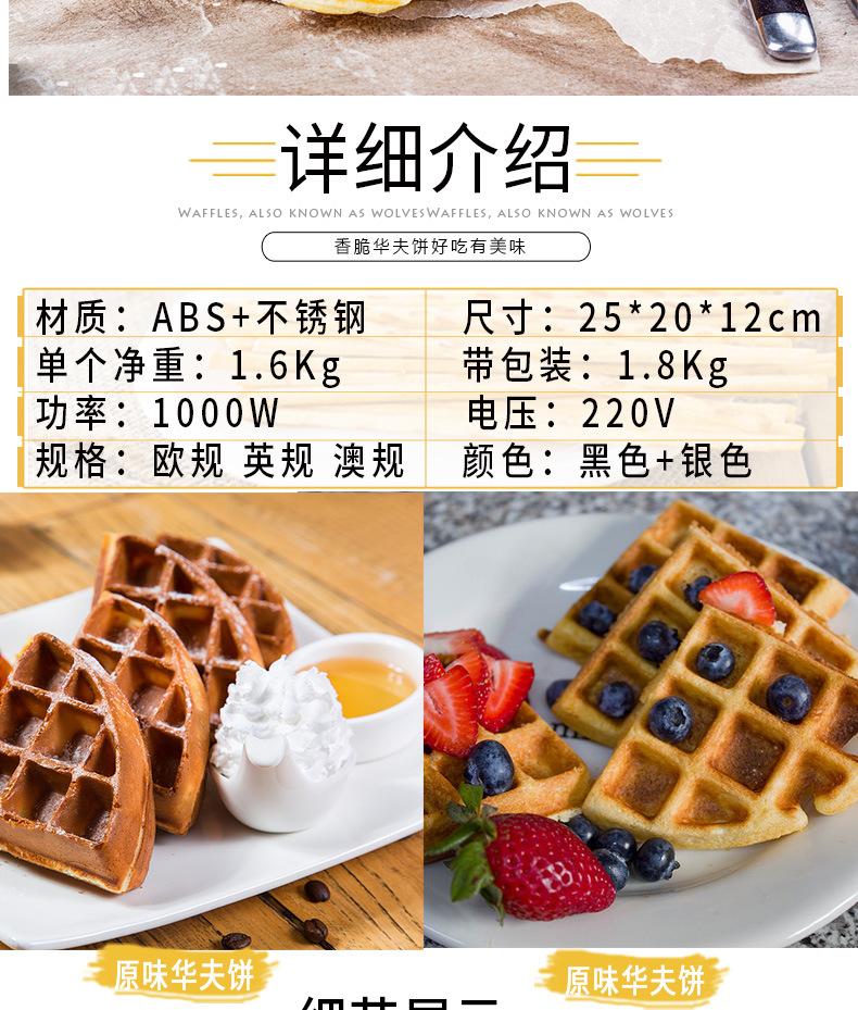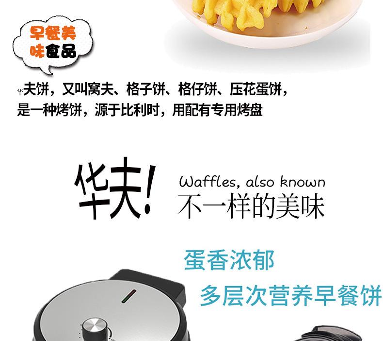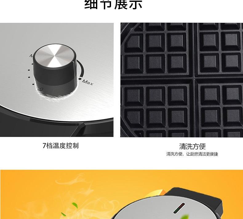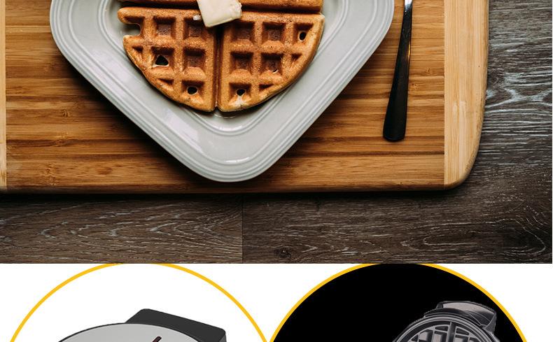 Máquina para hacer wafles Placa con revestimiento antiadherente Mango con aislamiento térmico 2 luces de control para encendido y Calentamiento Alta estabilidad mediante pies de goma Protección contra sobrecalentamiento 110-240V,50/60Hz,1000W
