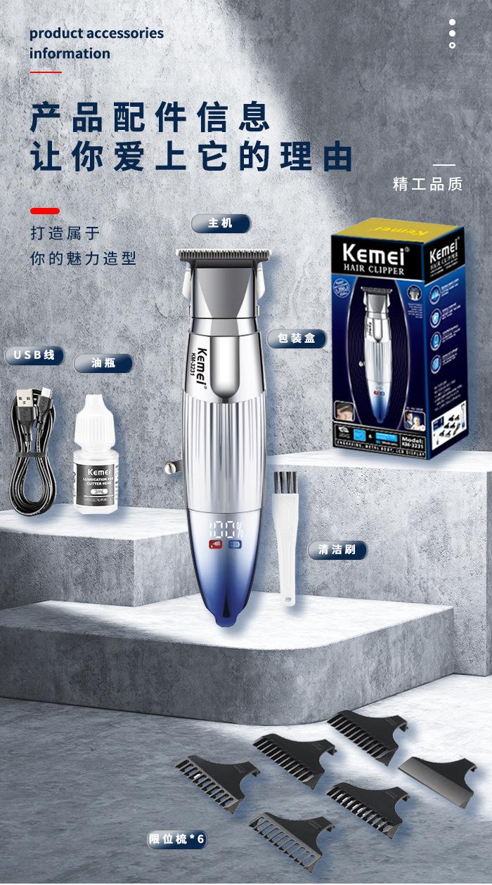 Cortadora eléctrica de alta potencia KEMEI, tijeras de peluquero, pantalla digital LCD LED, carga rápida, cortadora de cabello eléctrica profesional.