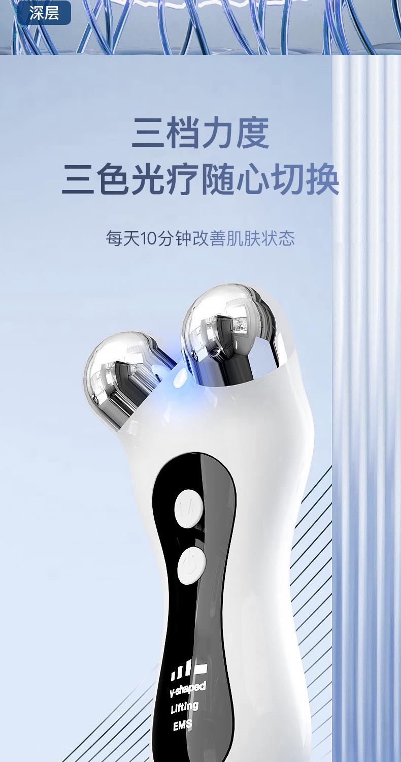 Nuevo rodillo V-face de belleza transfronterizo, la sonda está hecha de aleación de zinc Tiene vibración + calentamiento y modos de fototerapia de 3 niveles y microcorriente EMS, al masajear los puntos de acupuntura en el rostro con esos contactos en el rodillo, se acelera el metabolismo de la piel facial, lo cual es muy útil para nuestra belleza facial. La apariencia es de estilo minimalista, y la sensación en la mano es buena. Modelo privado, fábrica de origen, ¡¡¡bienvenidos clientes nuevos y antiguos a consultar!!! Para grandes cantidades se puede contactar para estilo de paquete y color de paquete