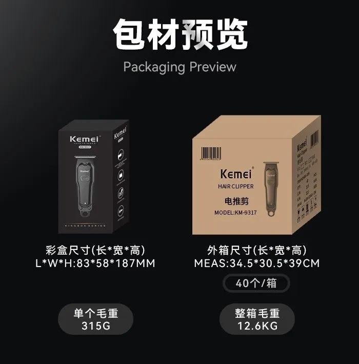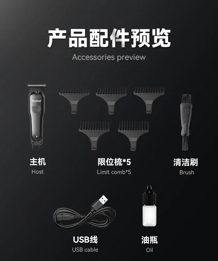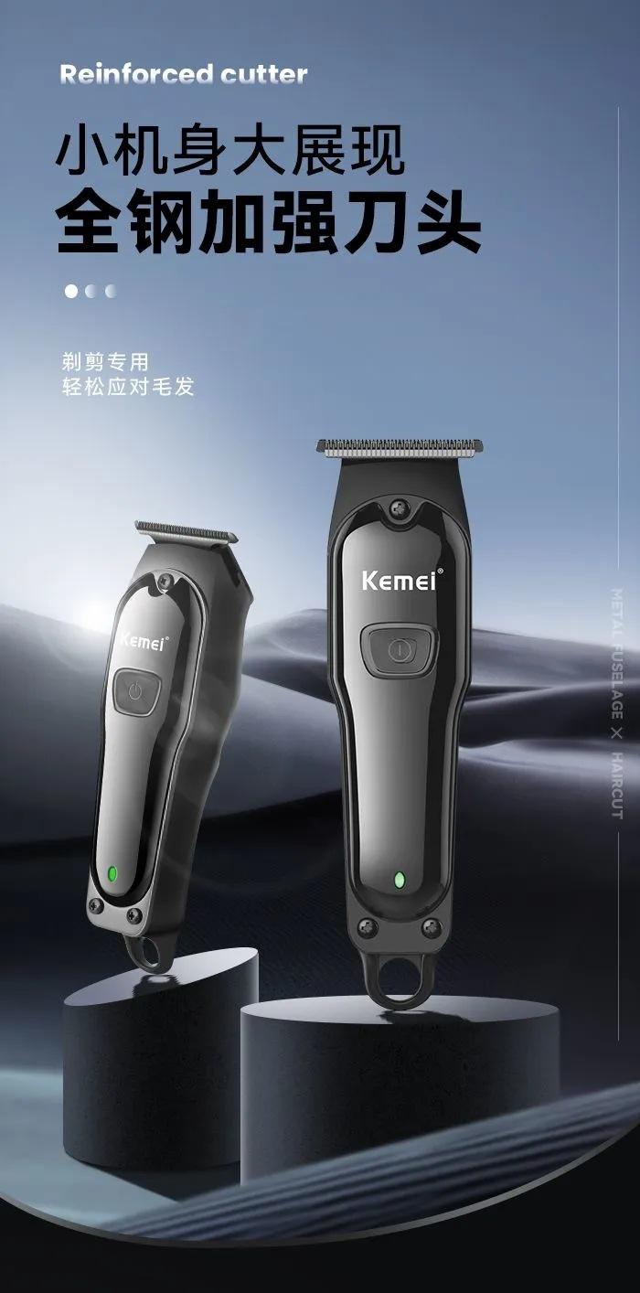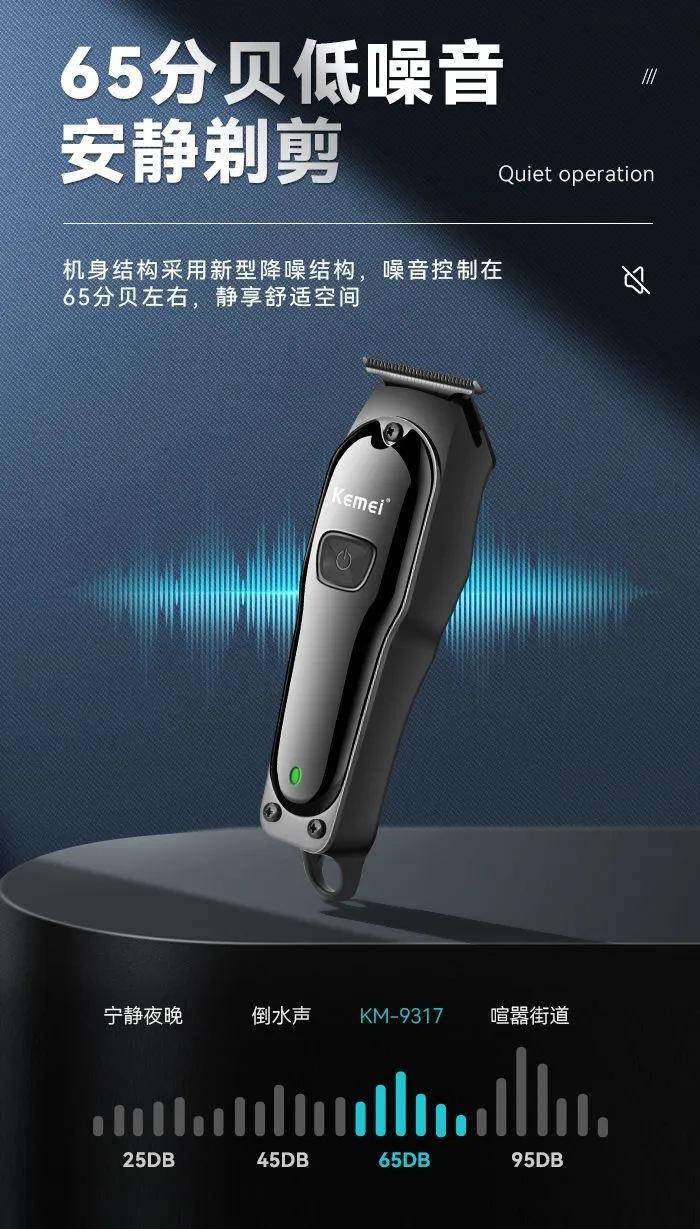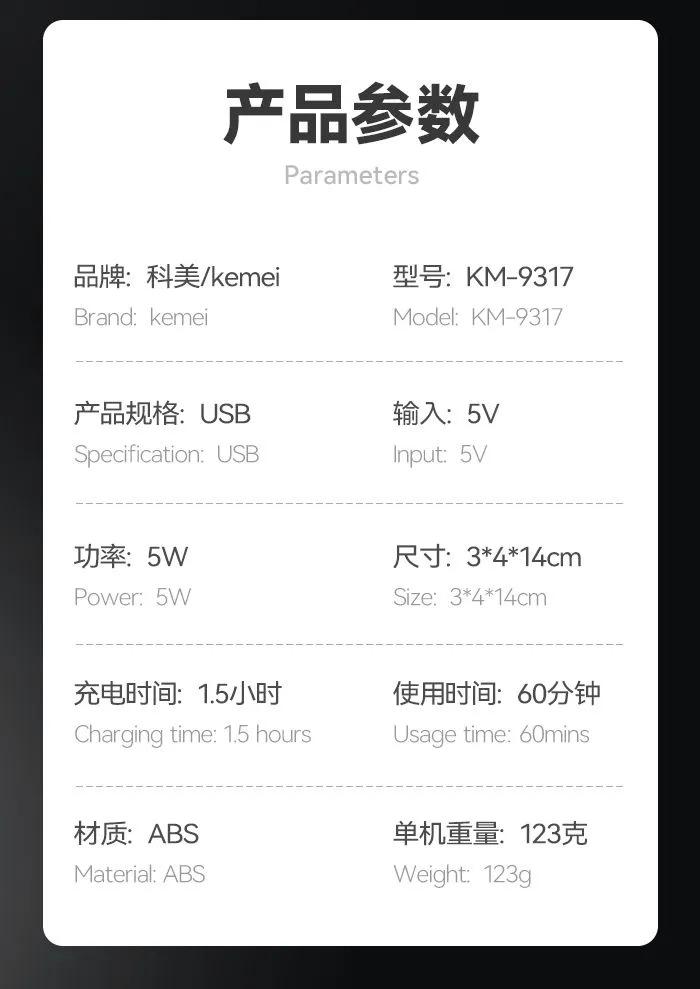 Cortadora eléctrica Kemei KM-9317, especial para peluquería, con cabezal de acero al carbono y carga USB, para uso doméstico.