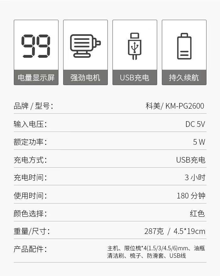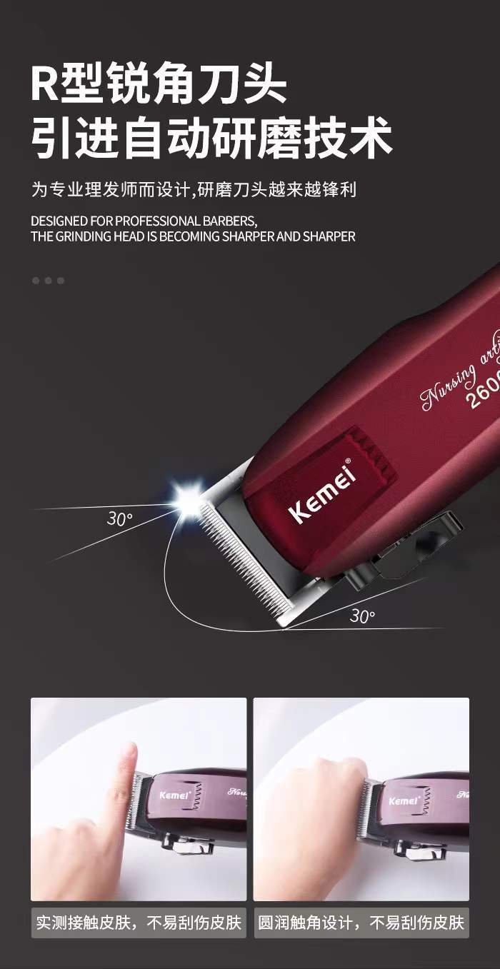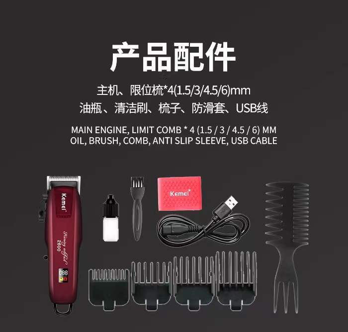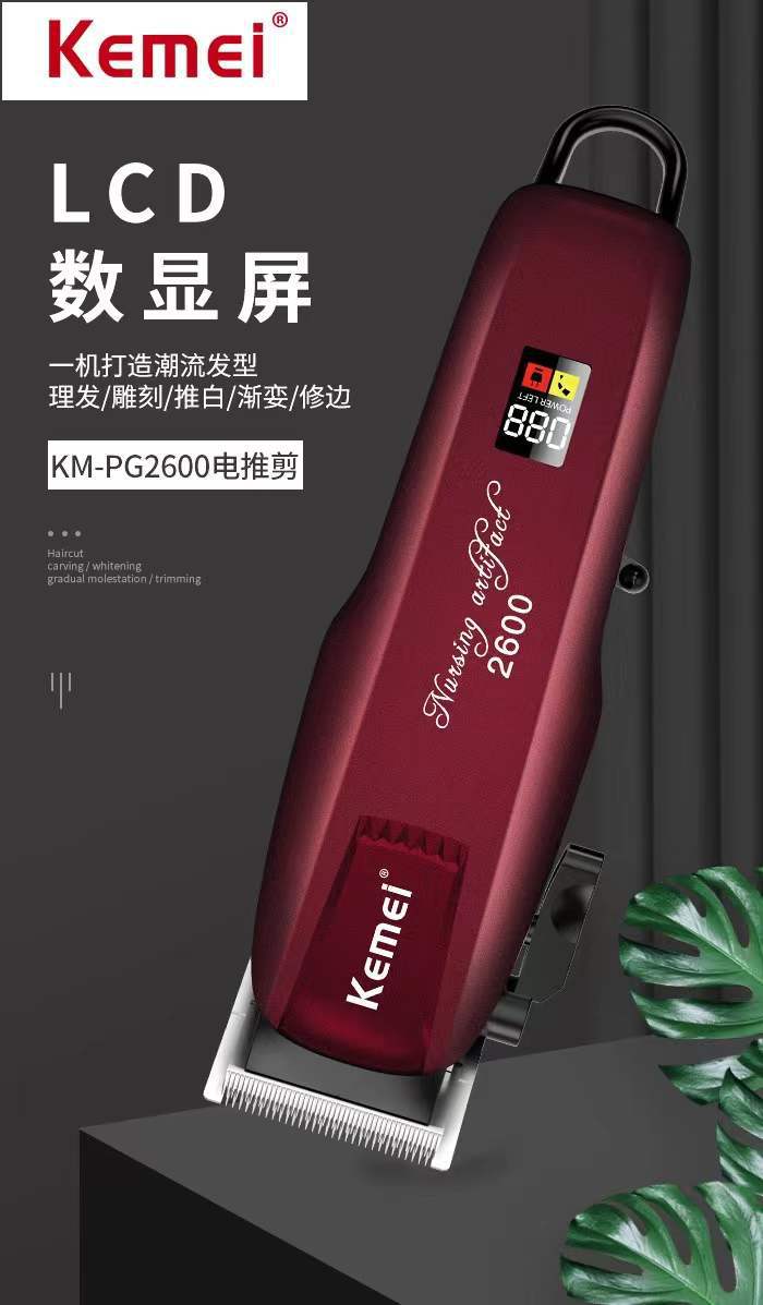 Cortadora de pelo eléctrica Kemei KM-PG2600 de alta potencia con pantalla digital LCD, estilo retro, para peluquería profesional.