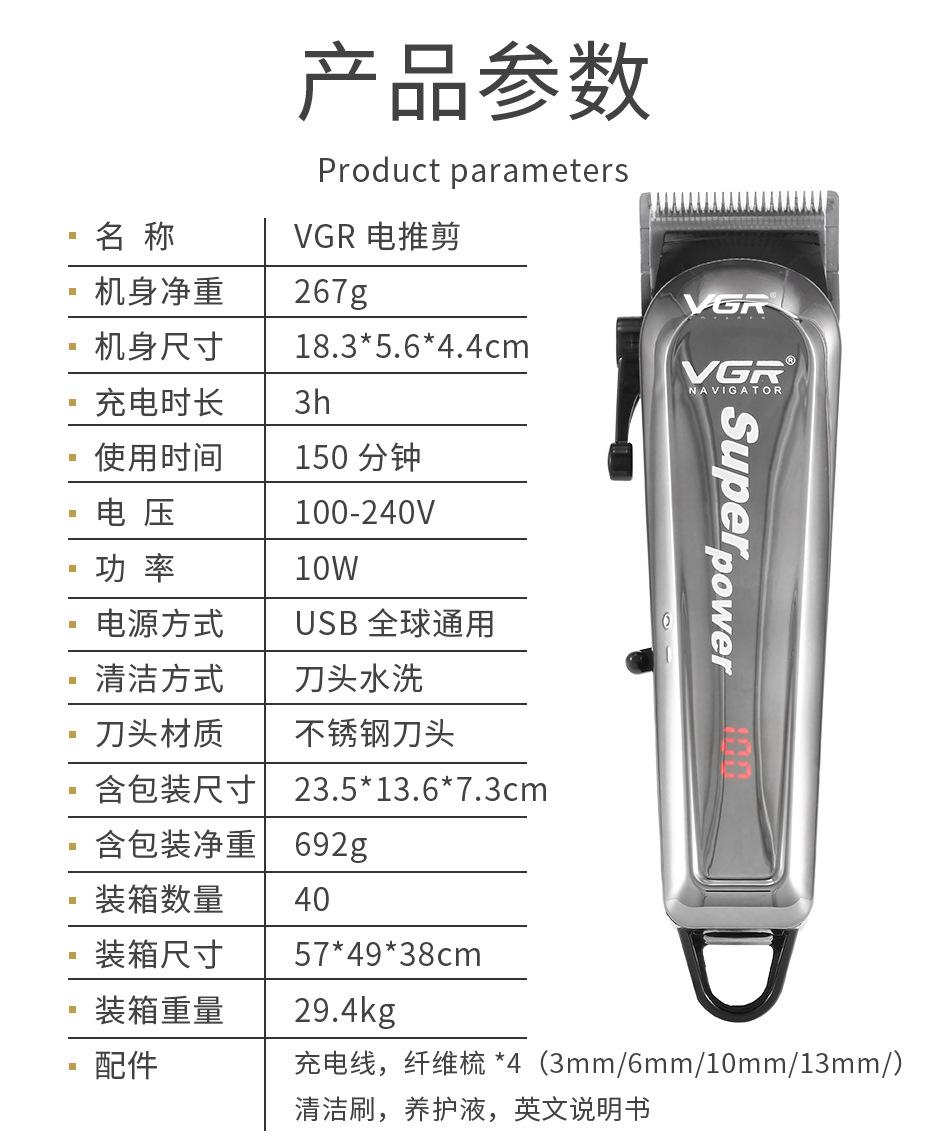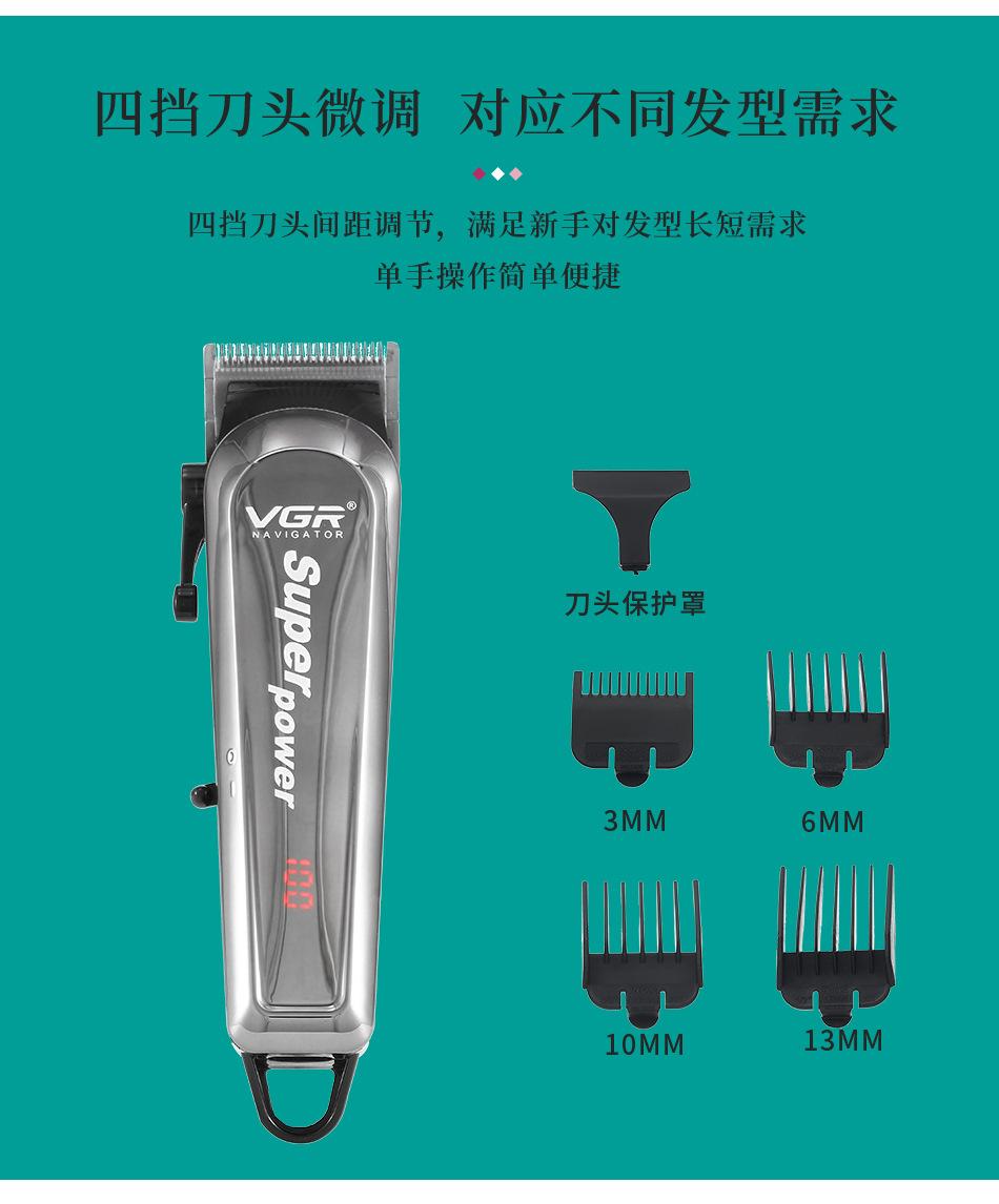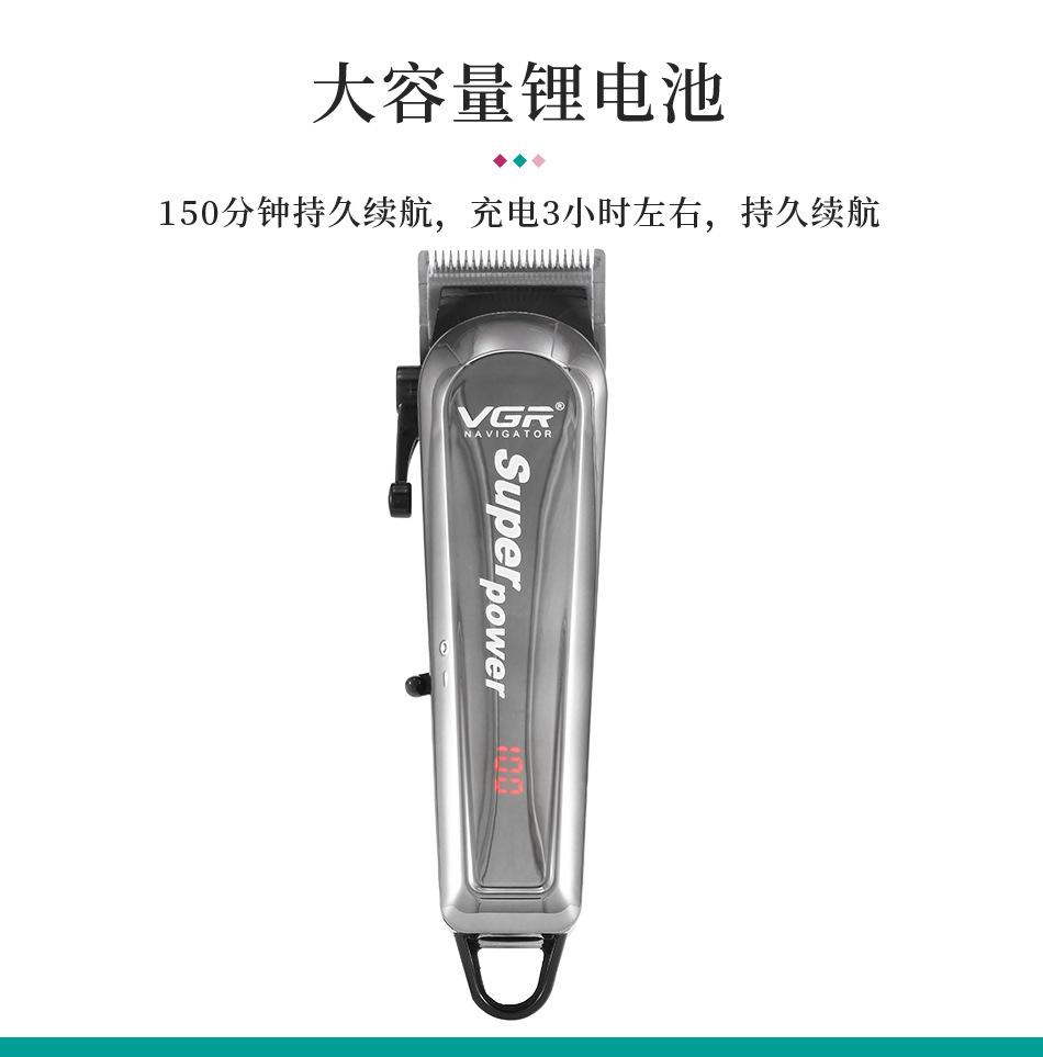 Cortadora de pelo profesional VGR060 con pantalla digital LCD transfronteriza, cortadora eléctrica doméstica de alta potencia, tijeras de peluquería para hombres