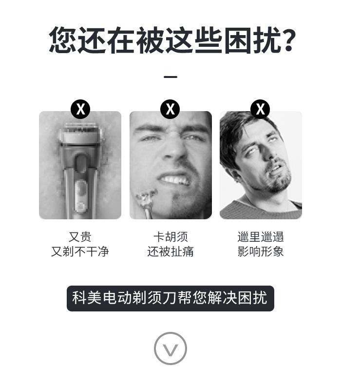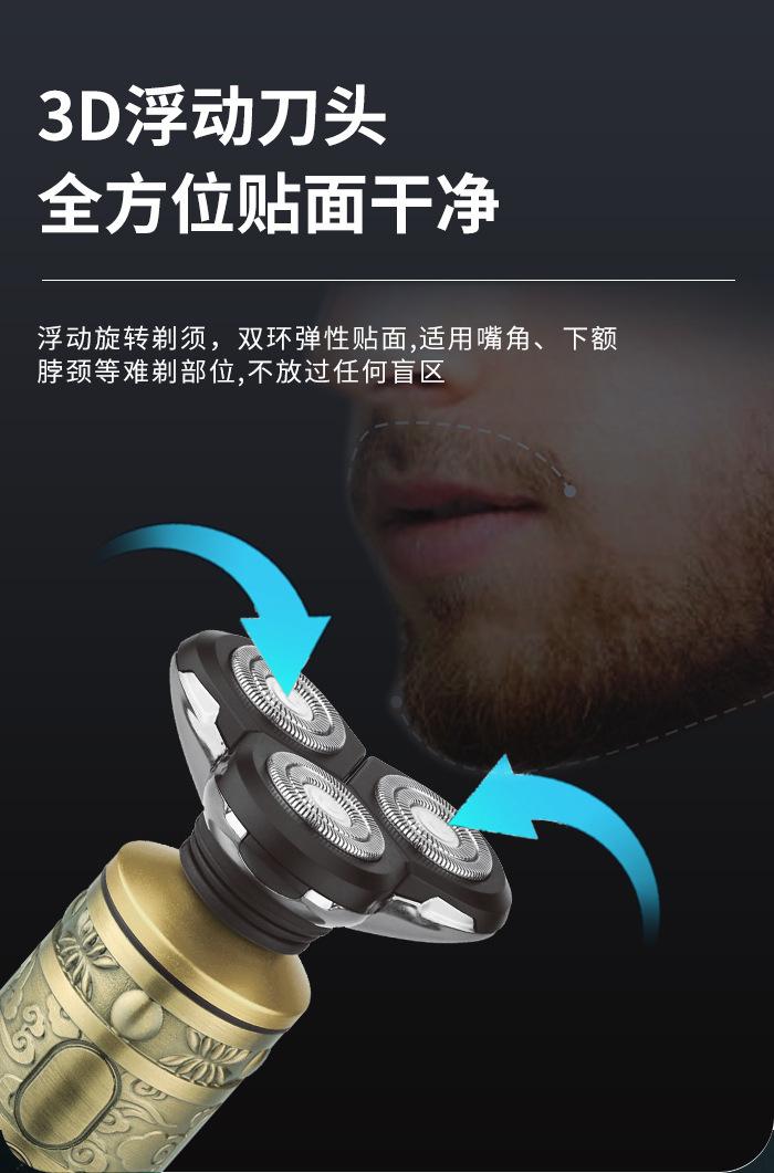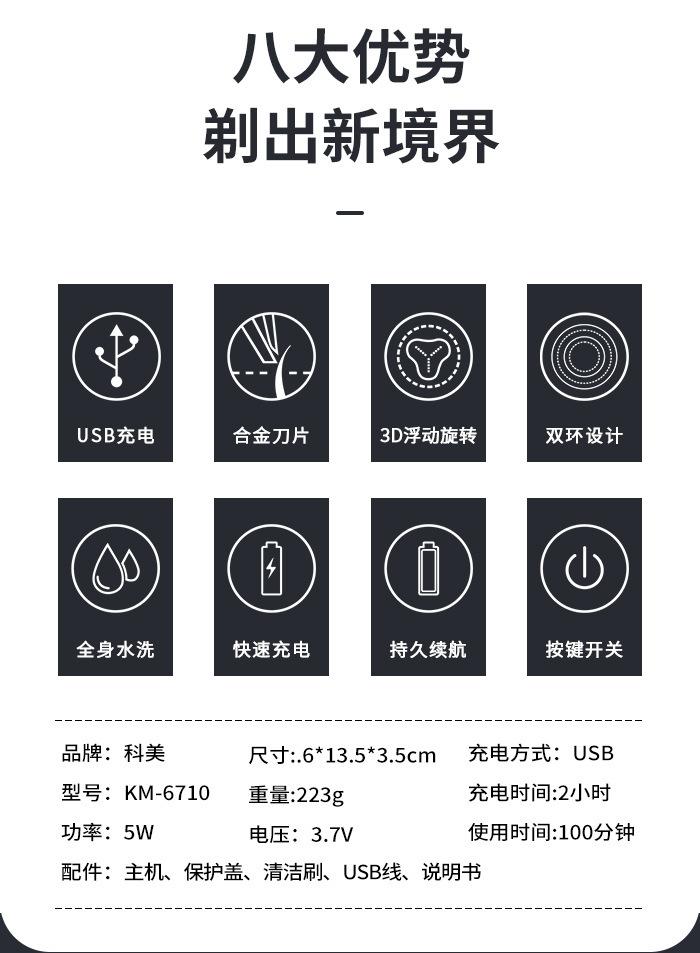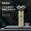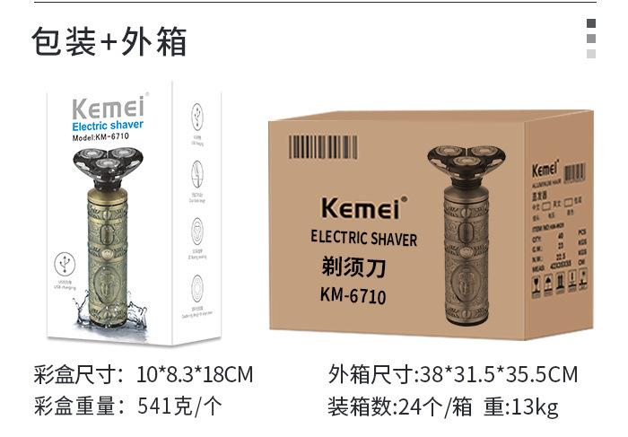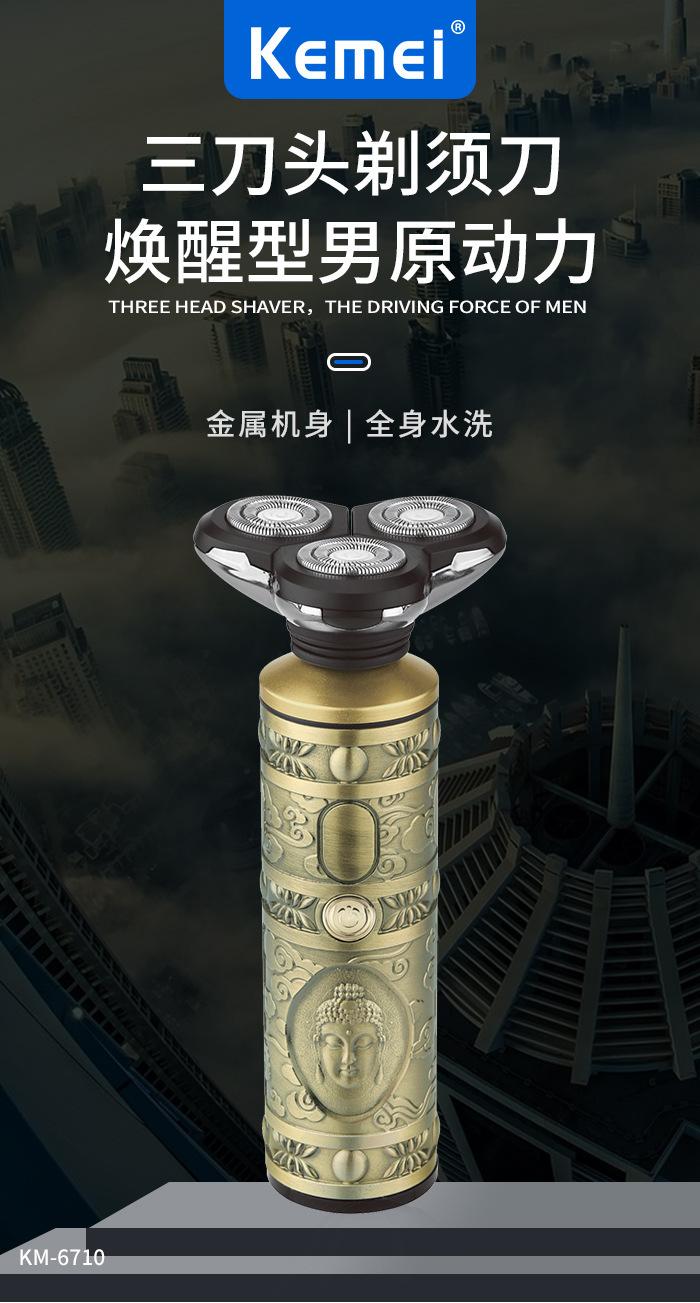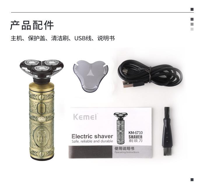 Afeitadora eléctrica Kemei KM-6710 de tres cabezales, lavable, flotante, pequeña, de metal, con USB