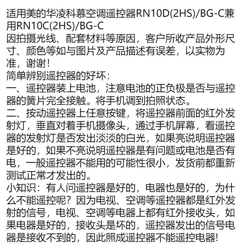 Adecuado para el control remoto del aire acondicionado Midea Hualingkemu RN10D(2HS)/BG-C y RN10C(2HS)/BG-C