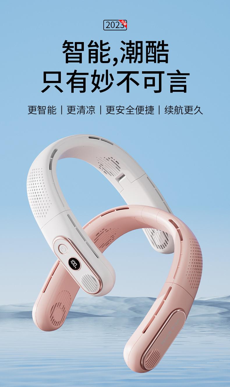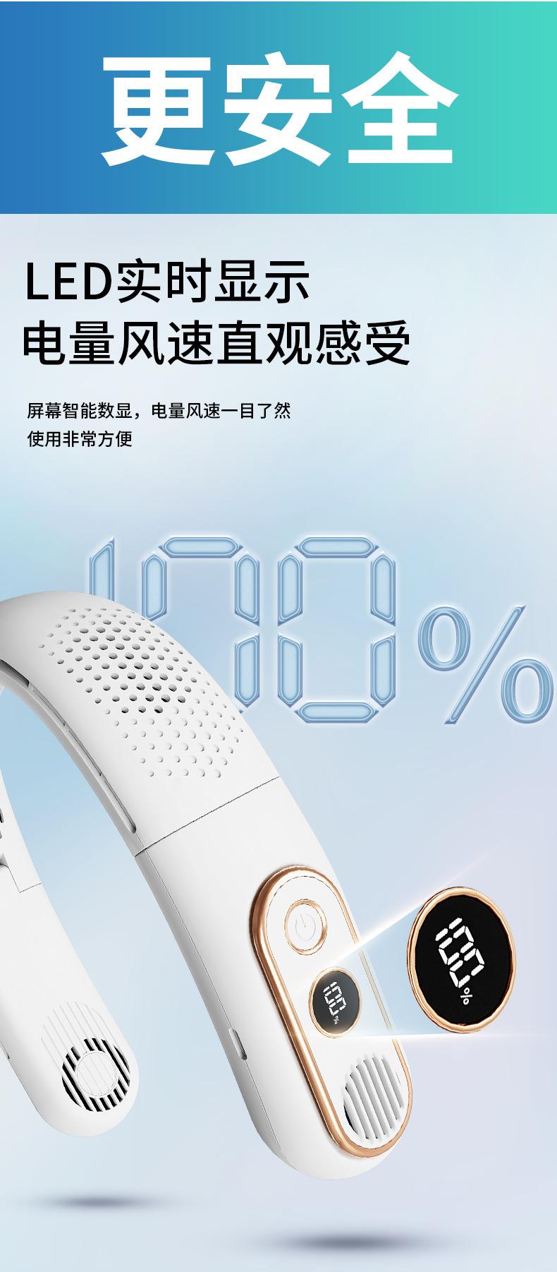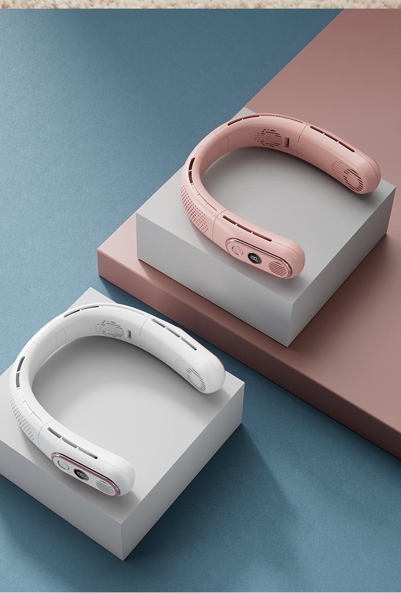 Nuevo Ventilador de Cuello Colgante sin Aspas Transfronterizo Carga USB Pantalla Digital Silencioso Portátil Plegable Mini Ventilador Venta al por Mayor