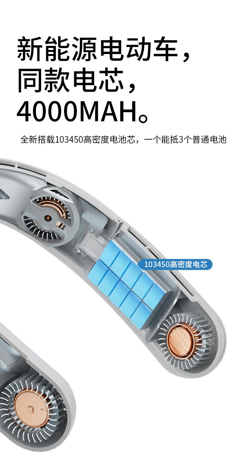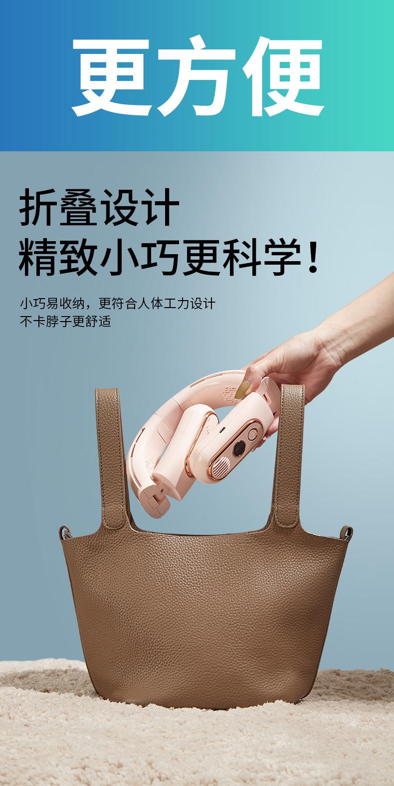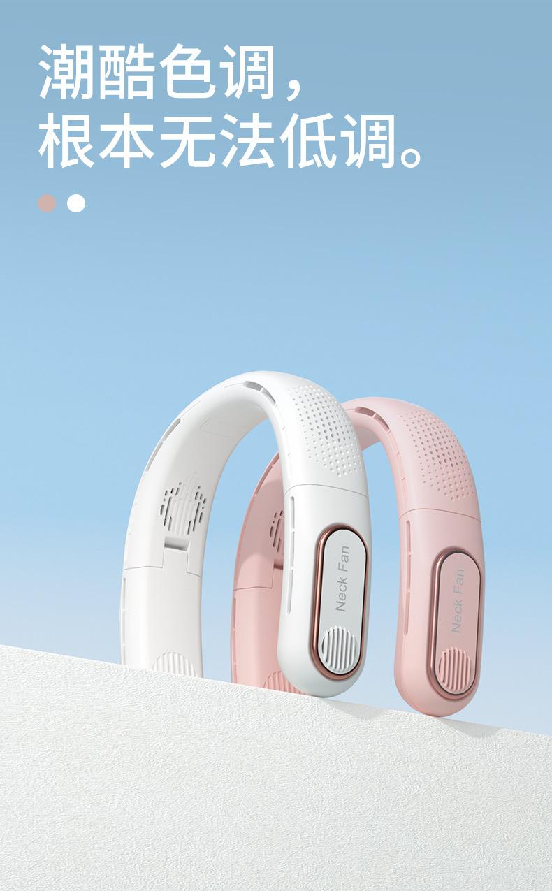 White 4000 mA quad-core folding digital display hanging neck fan [three big wind adjustment]], Pink 4000 mA qu...