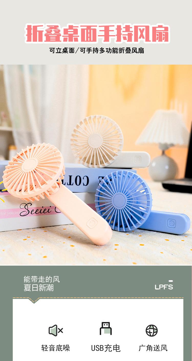 Nuevo ventilador pequeño de mano plegable de color sólido simple, portátil de viaje, con carga USB, mini ventilador de bolsillo