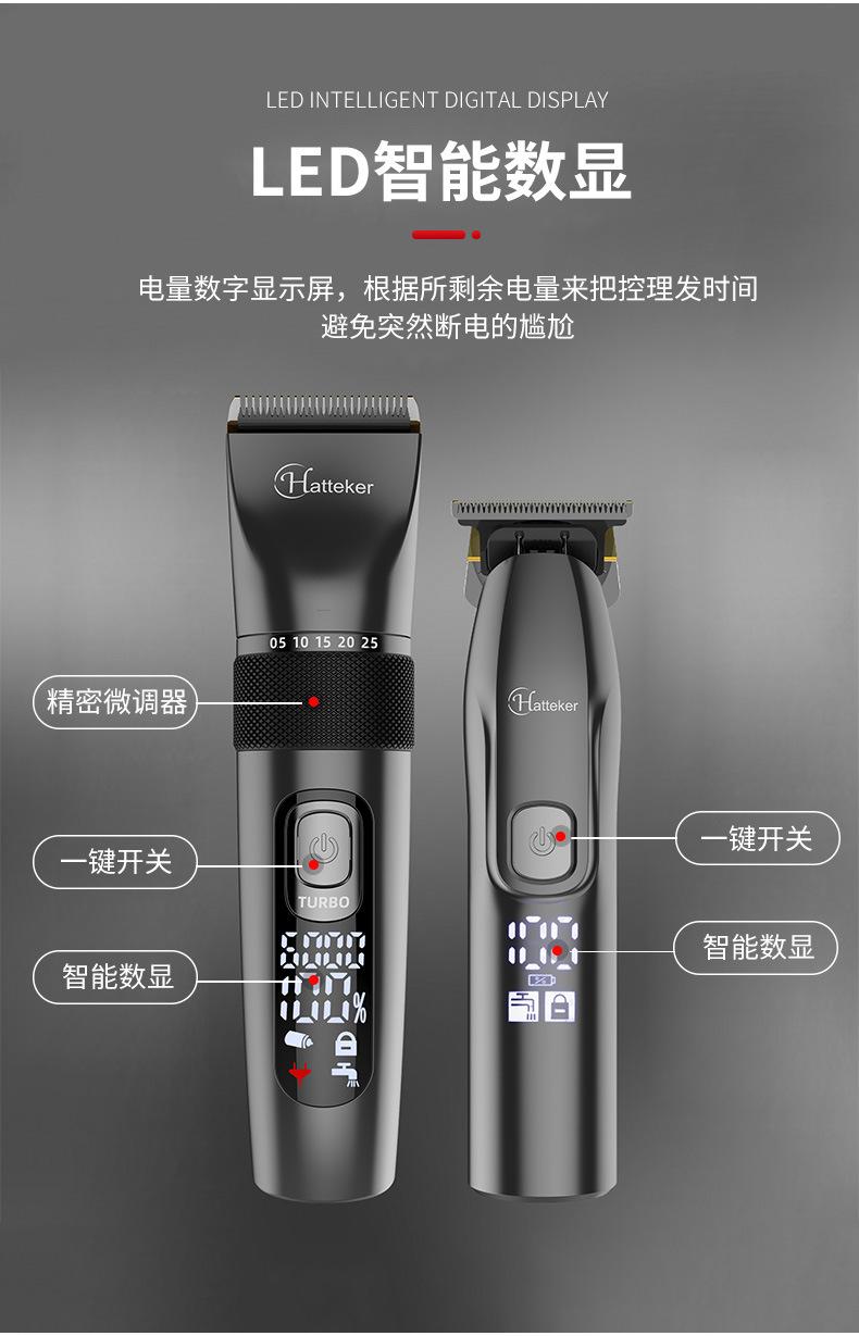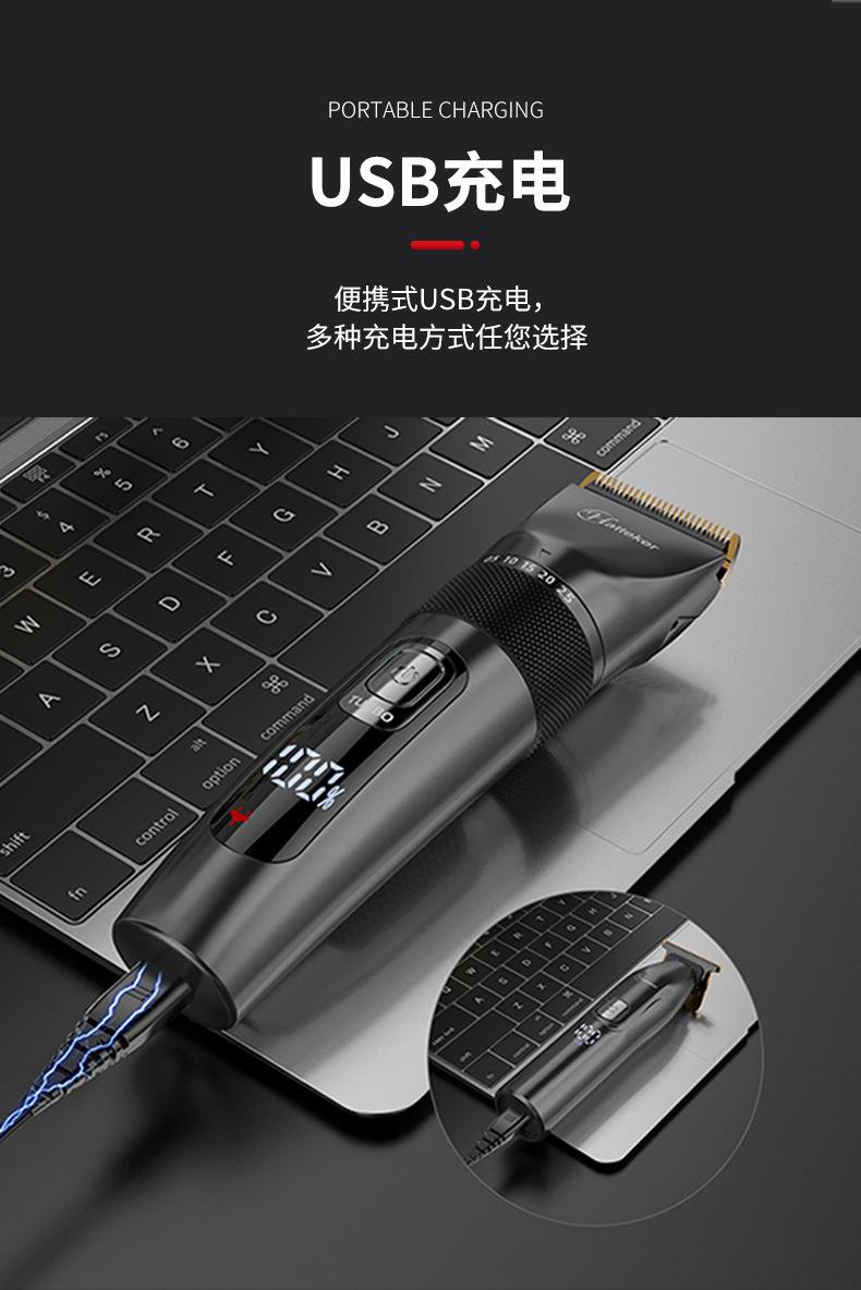 Punto de venta: Cortapelos nuevo mejorado, pantalla digital LCD de alta gama, hoja ultrafina de pulvimetalurgia, batería de litio de gran capacidad, ajuste multivelocidad, 5 horas de funcionamiento después de la carga completa, ajuste fino de rotación de 5 velocidades, carga USB