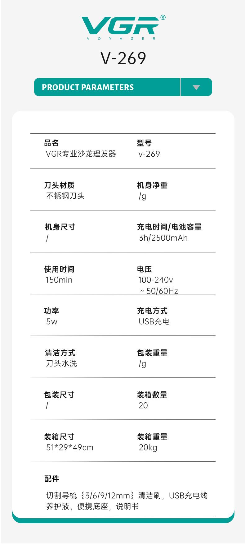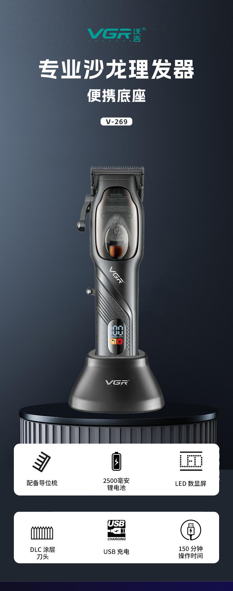 Vgr269 Clipper Recargable Transfronterizo Base Clipper de Cabeza de Aceite de Alta Potencia Degradado Regular Eléctrico Clipper Salón de Peluquería Pantalla Digital Clipper de Cabello