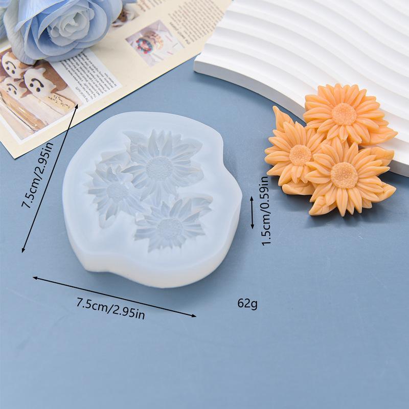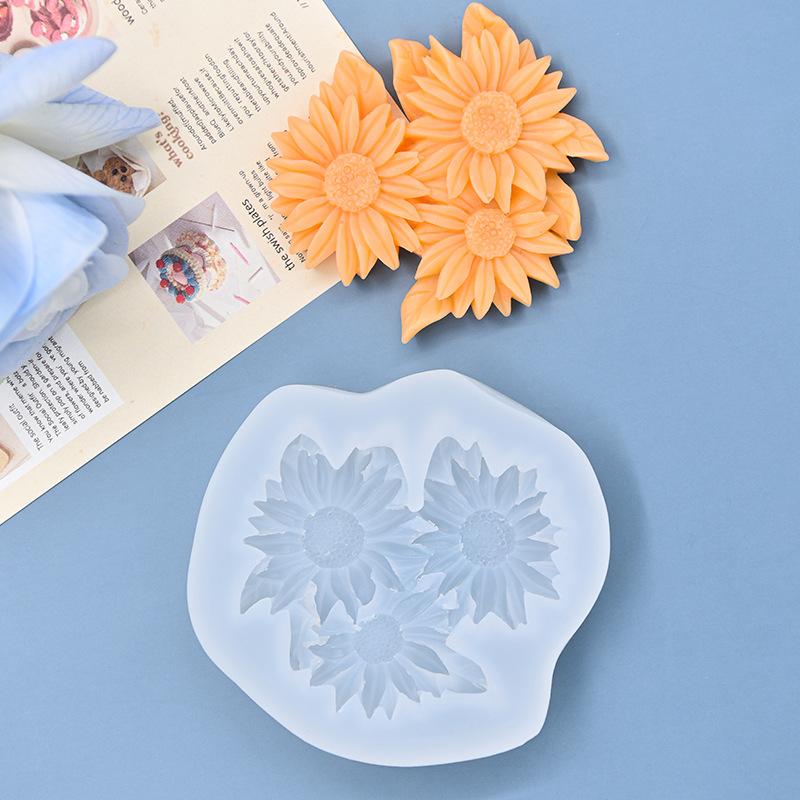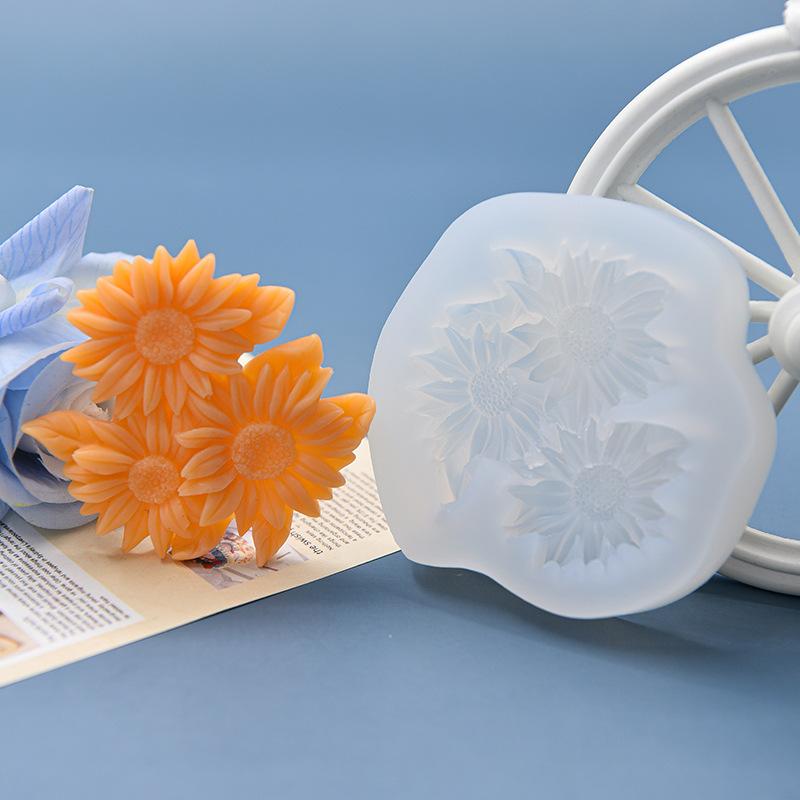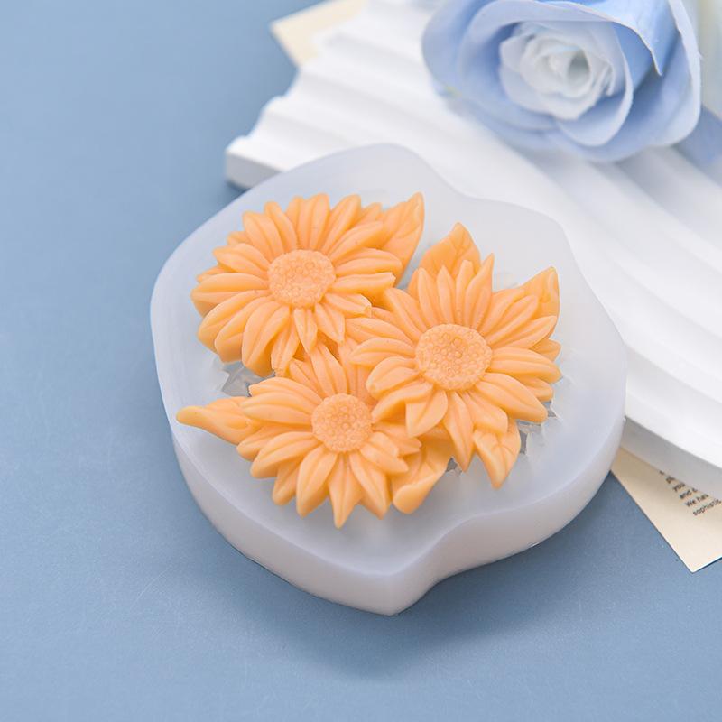 Molde de silicona con forma de girasol para hornear mousse de chocolate, molde de yeso con forma de vela de aromaterapia de epoxi con orificio