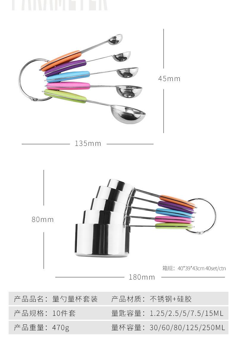 Taza medidora de acero inoxidable, cuchara medidora, cuchara medidora, herramienta de medición para hornear, báscula para leche en polvo, cuchara medidora para hornear, juego de 10 piezas