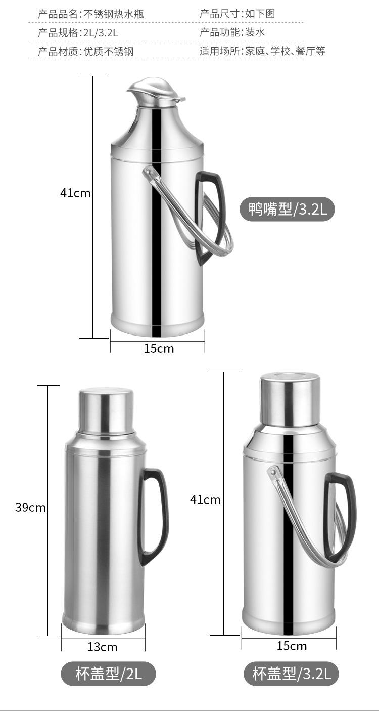 Botella Termo con Forro de Vidrio 3.2L Gran Capacidad Hogar Dormitorio Acero Inoxidable Aislado Hervidor de Agua Caliente Botella Termo