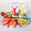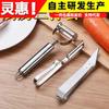El pelador tiene hojas gruesas y delgadas, y el cuchillo pelador puede raspar verduras y frutas respectivamente. |