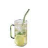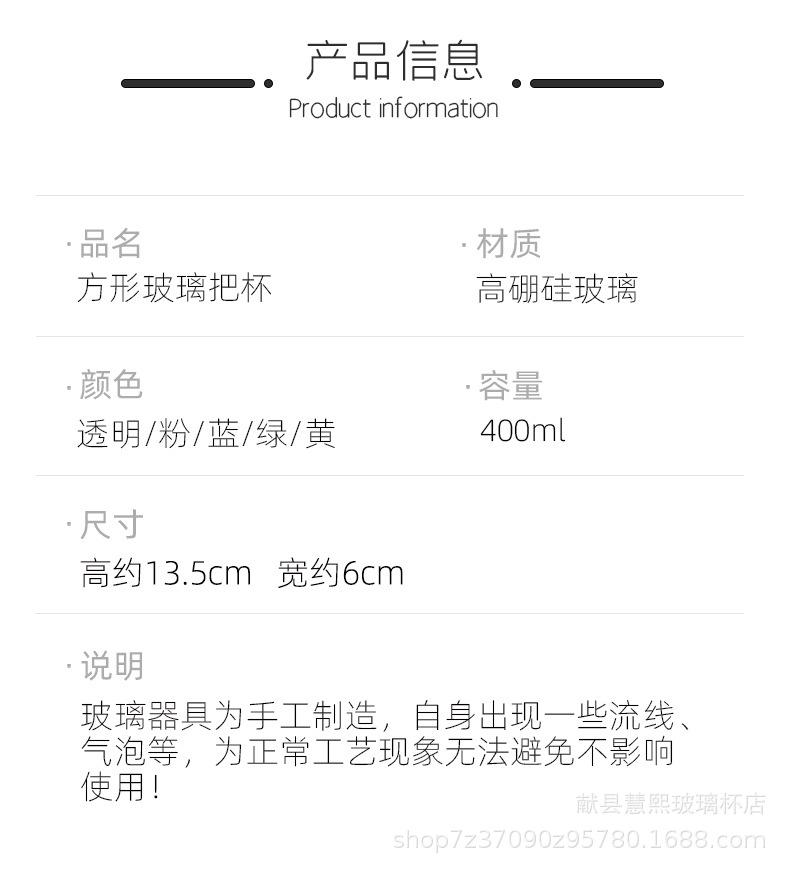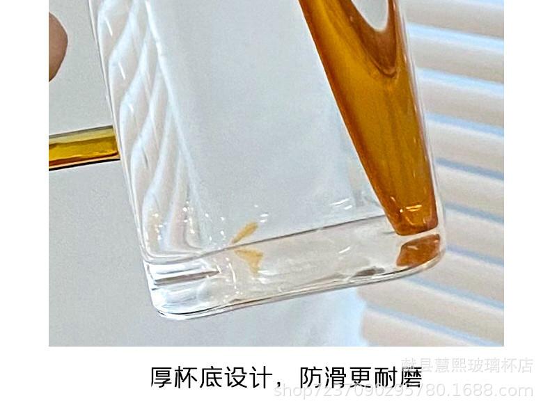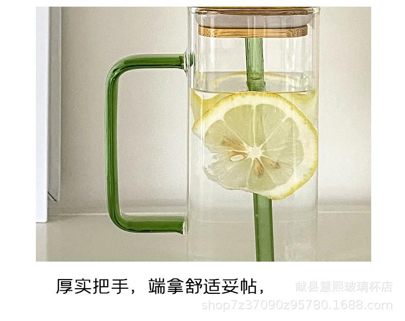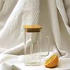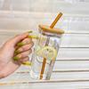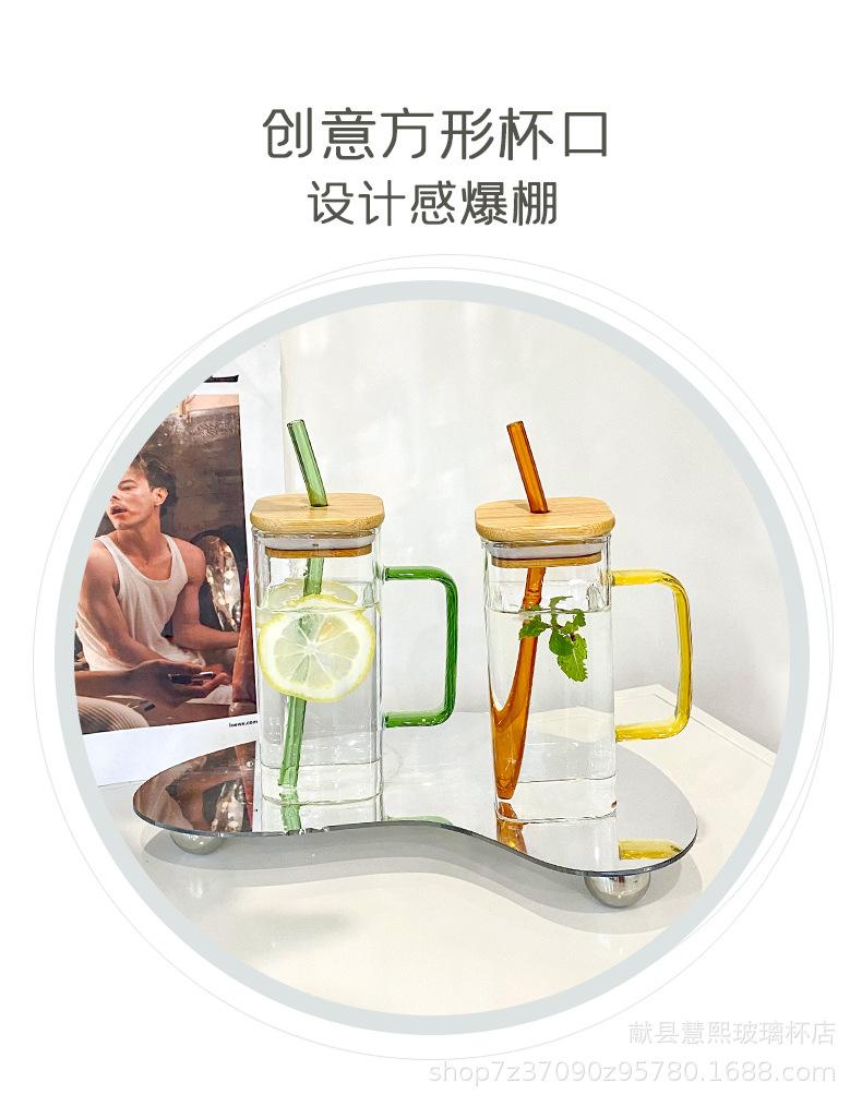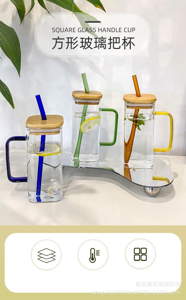 Taza de vidrio de borosilicato de una sola capa de color cuadrado con tapa de madera, tubo de succión de vidrio, taza simple de gran capacidad para jugo y leche.