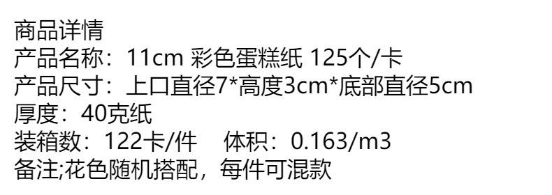 Soporte de papel para pasteles, directo de fábrica, 11 cm, 125 piezas/tarjeta para hornear, resistente a altas temperaturas, molde especial para pasteles, molde para pasteles