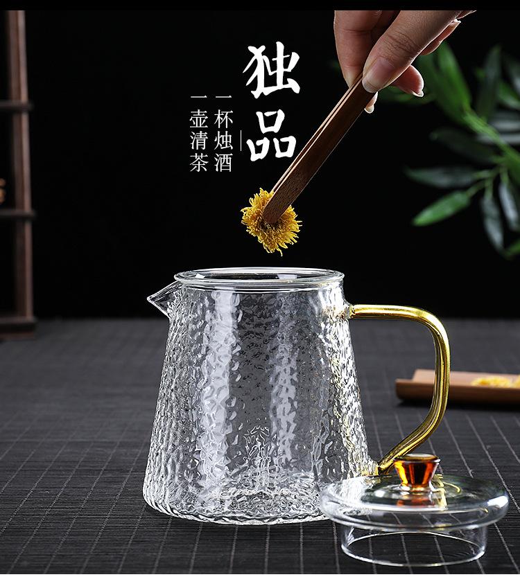 Tetera de vidrio de borosilicato de alta calidad con martillo, resistente a altas temperaturas, con filtro, para uso doméstico, con flores, venta al por mayor de fábrica