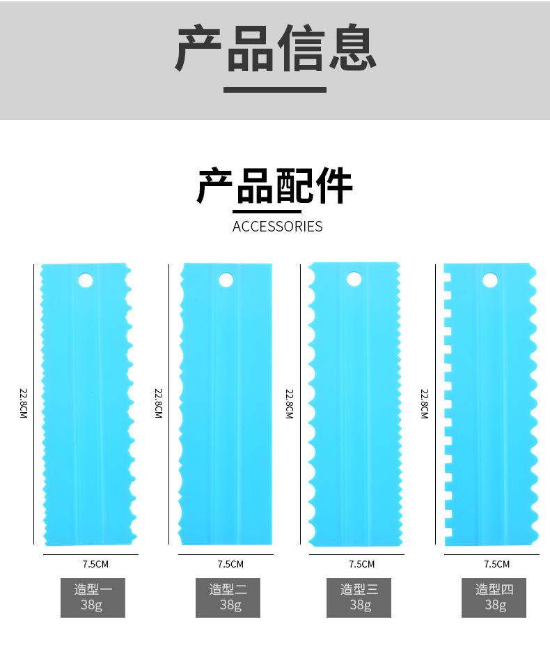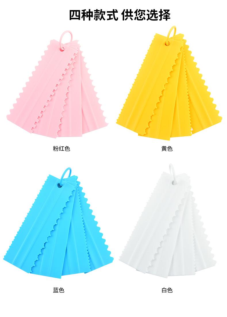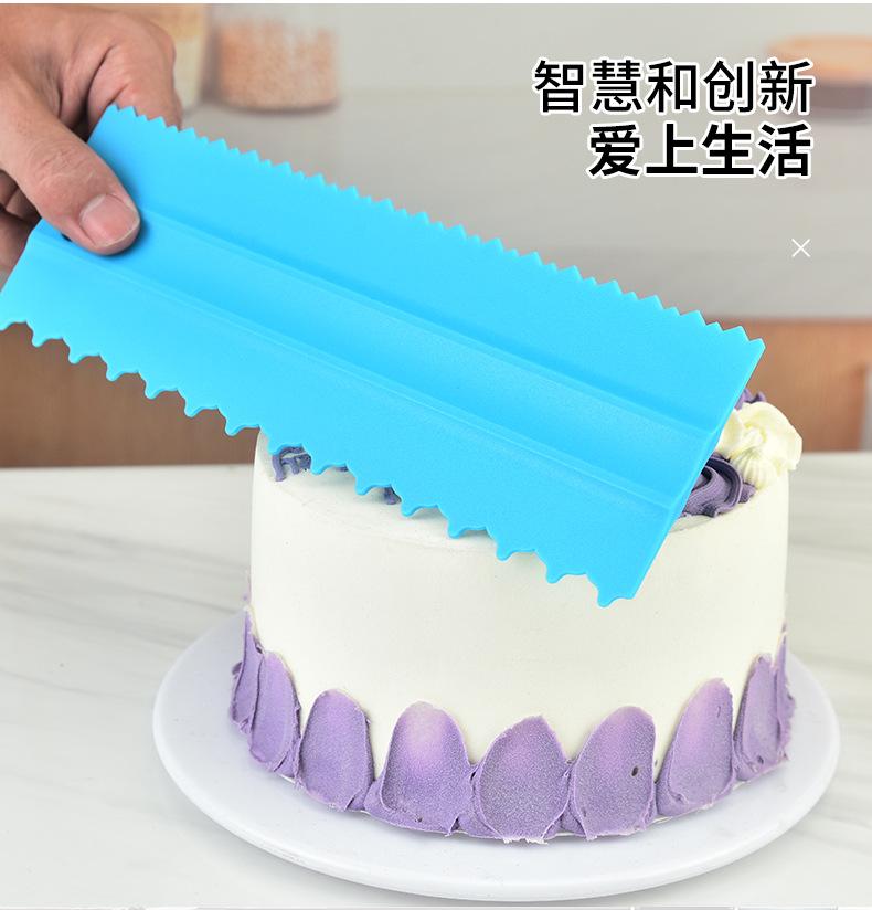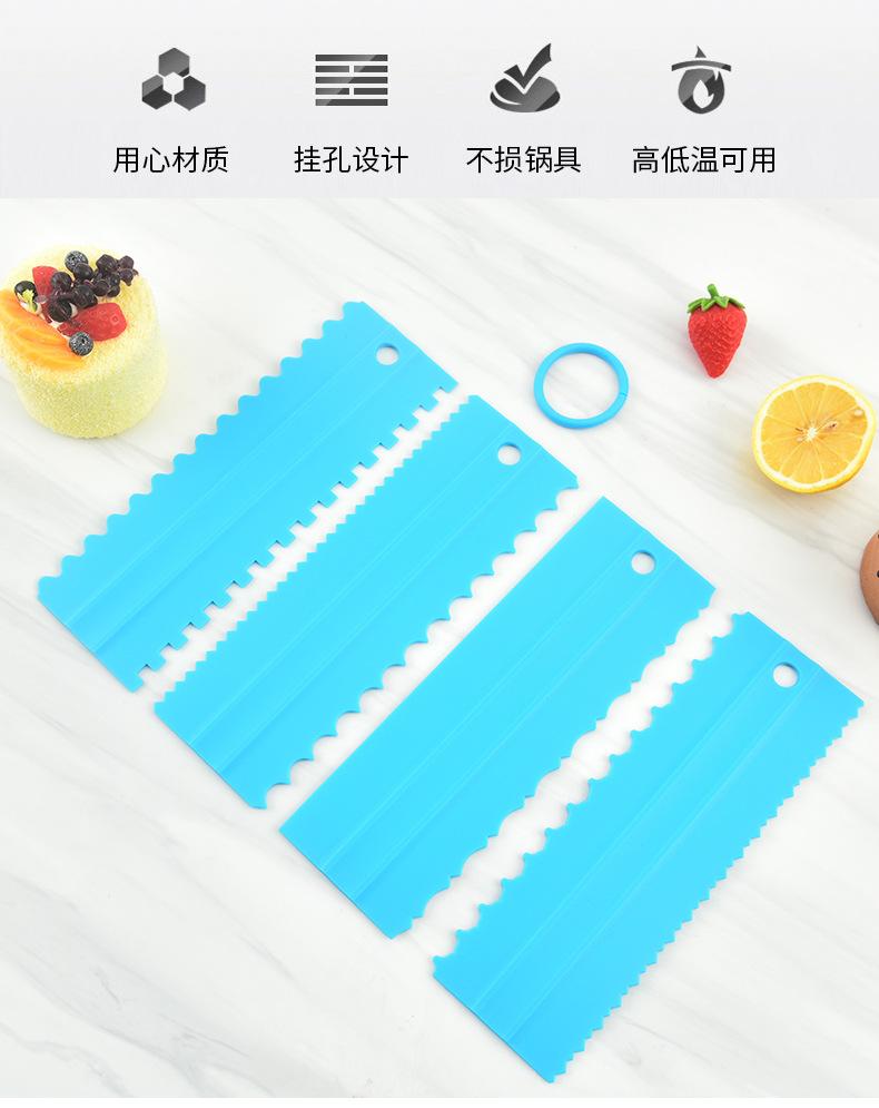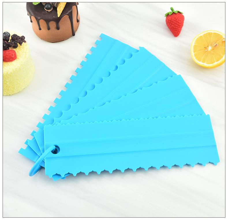 Compra Juego de raspadores de crema de plástico para hornear, herramientas para hornear, nuevo patrón de peine para raspador de pastel, juego de raspadores de crema de 4 piezas al por mayor en Joom.pro