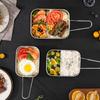 Lonchera rectangular de acero inoxidable 304 para estudiantes, lonchera de tres rejillas con asa, lonchera con tapa sellada