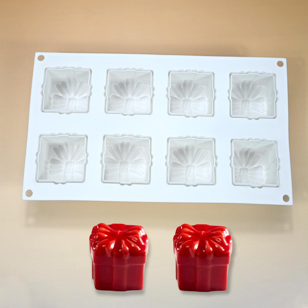Compra Molde para hornear pasteles de mousse con forma de caja de regalo con lazo, molde de yeso para aromaterapia con aroma a postre francés de chocolate DIY al por mayor en Joom.pro