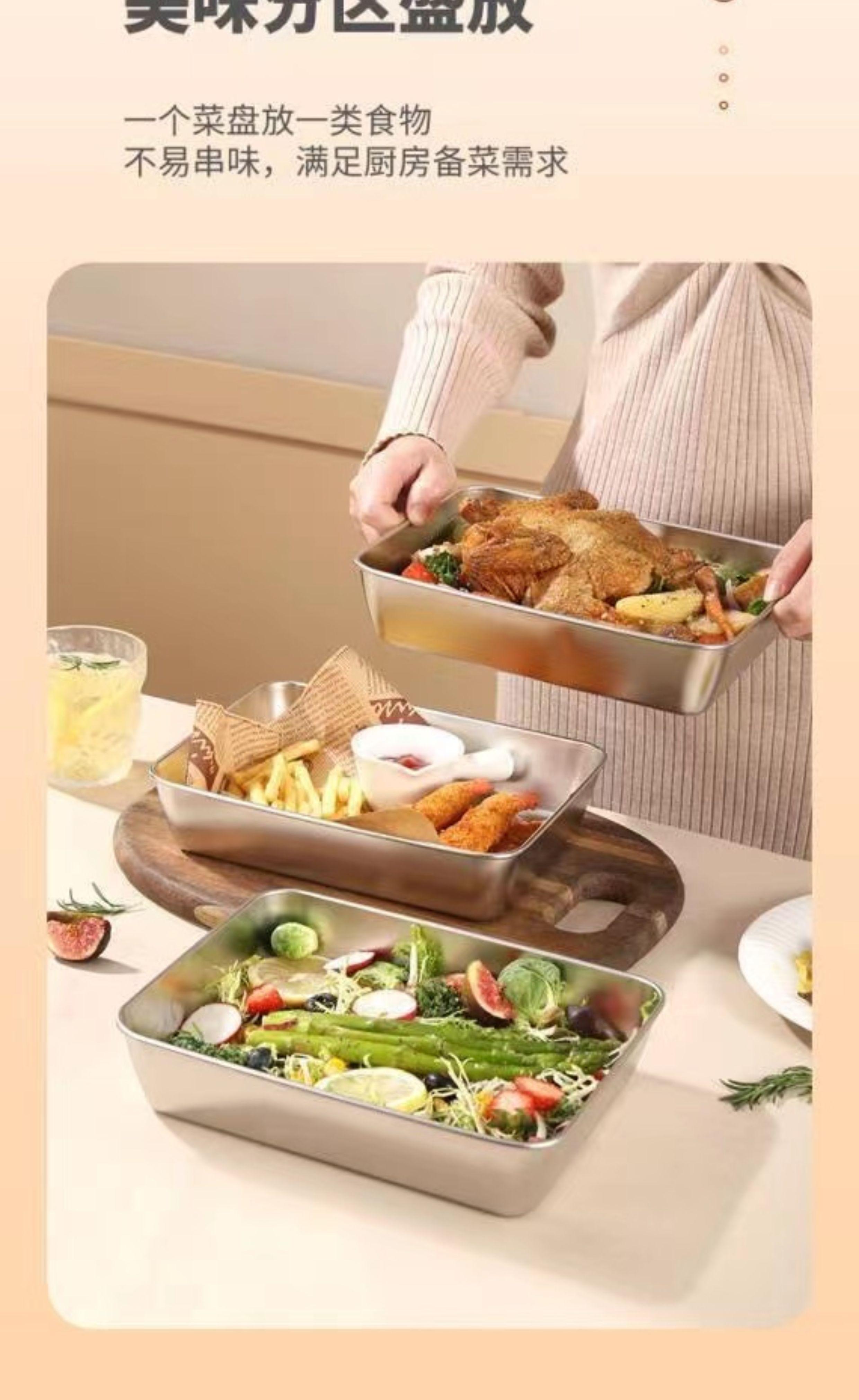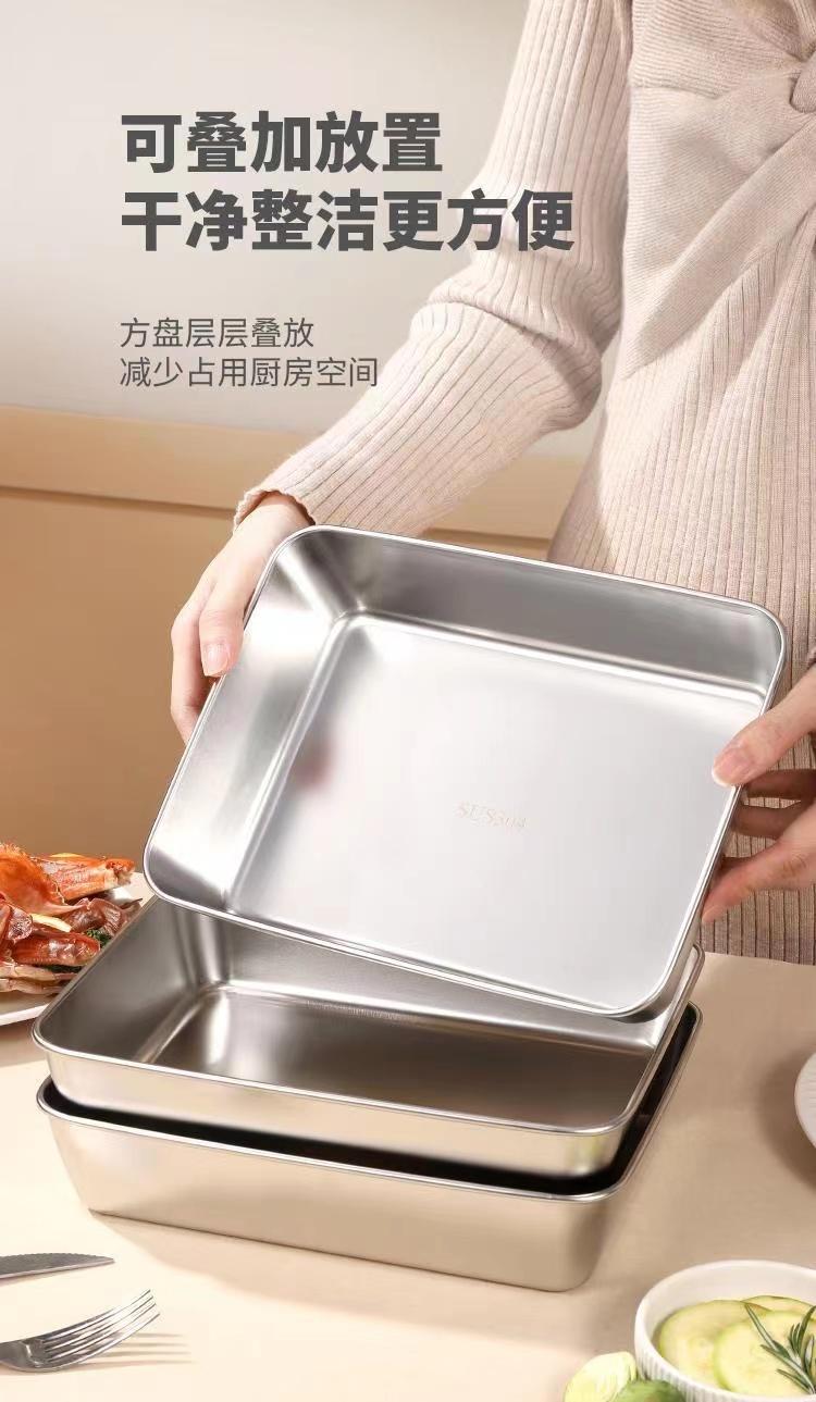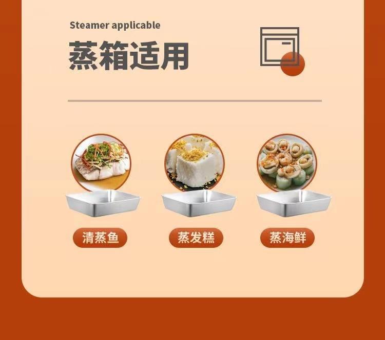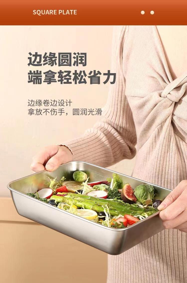 Plato cuadrado largo engrosado de acero inoxidable 304 de grado alimenticio, bandeja para platos fríos, bandeja para cocinar al vapor, bandeja multiusos para toallas