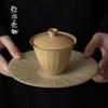 Cuenco con tapa de sancai para cambio de horno, juego de té de kung fu para el hogar, tetera vintage hecha a mano, taza de cerámica para ceremonia del té, tamaño pequeño y grande