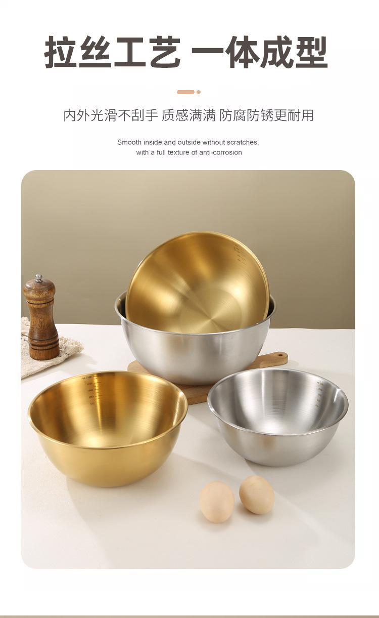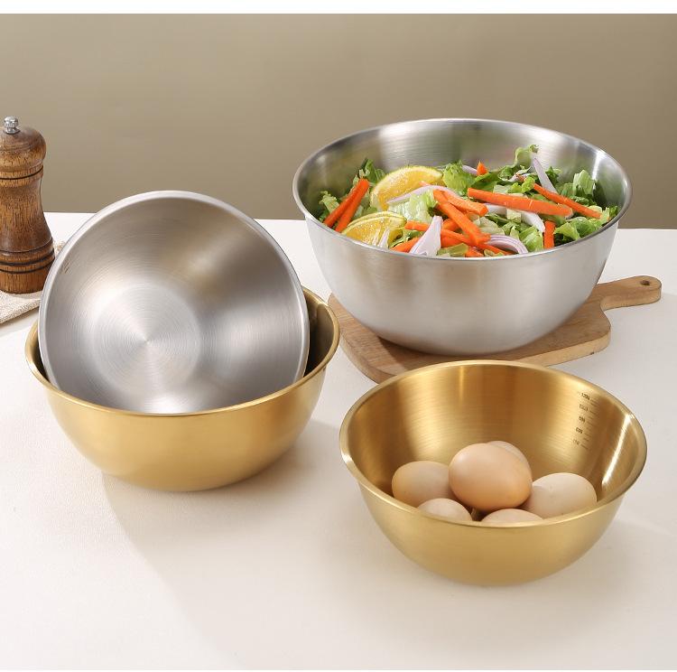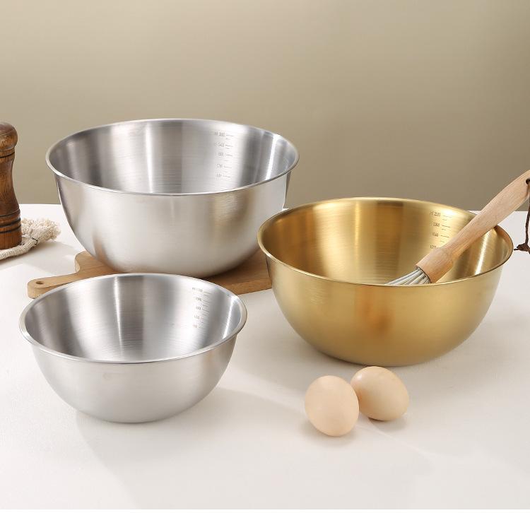 Cuenco de acero inoxidable para ensalada, cuenco para cocinar en casa con báscula, cuenco para amasar, cuenco para hornear y revolver huevos estilo japonés.