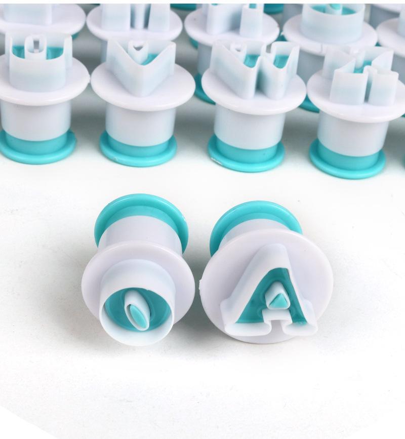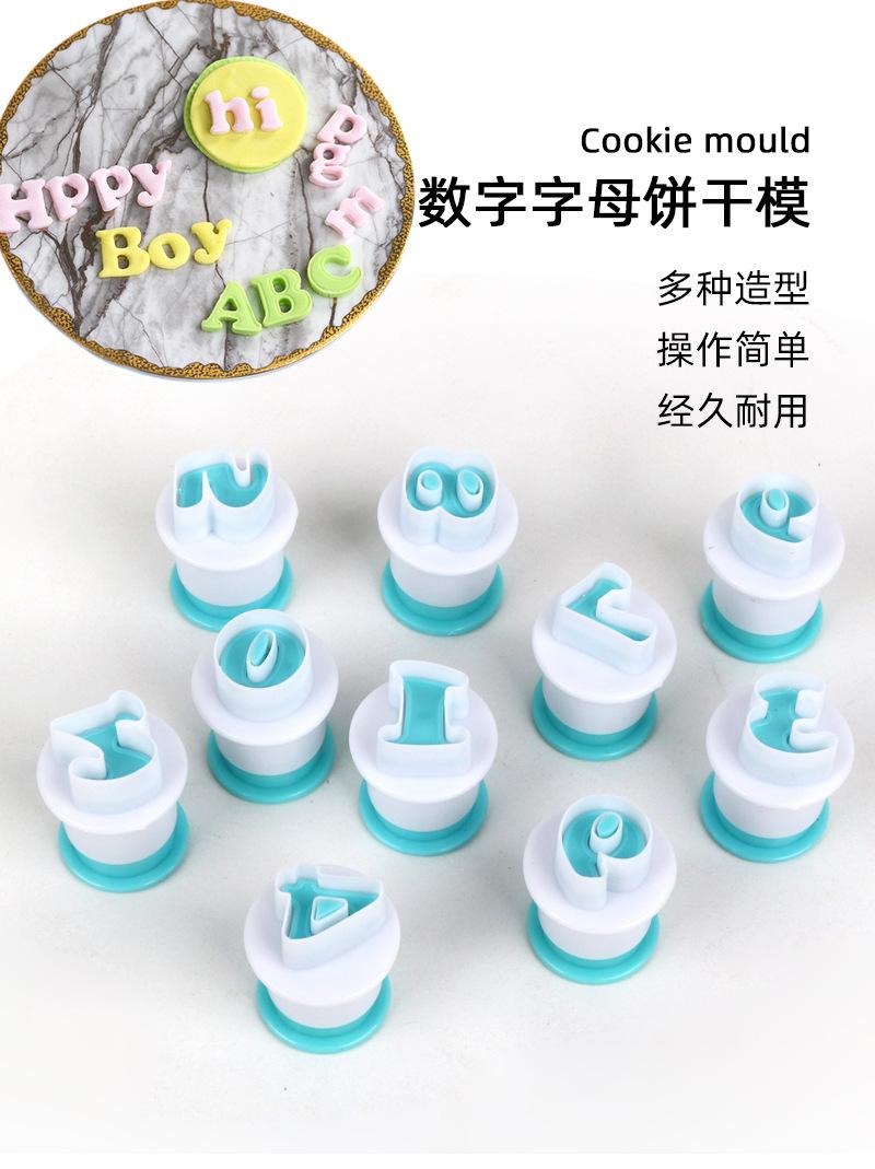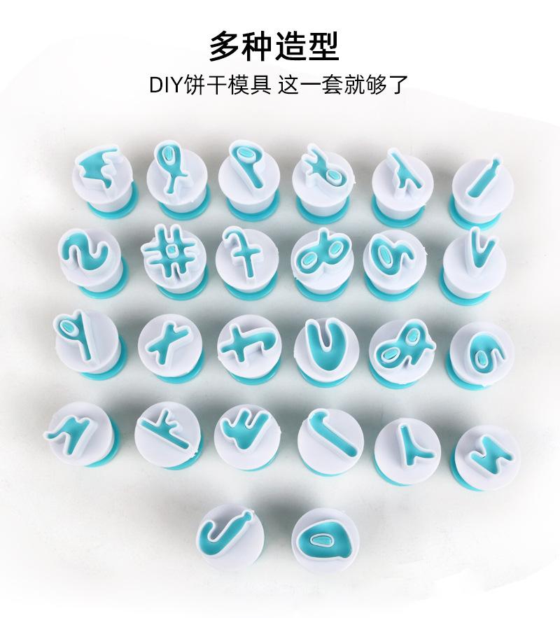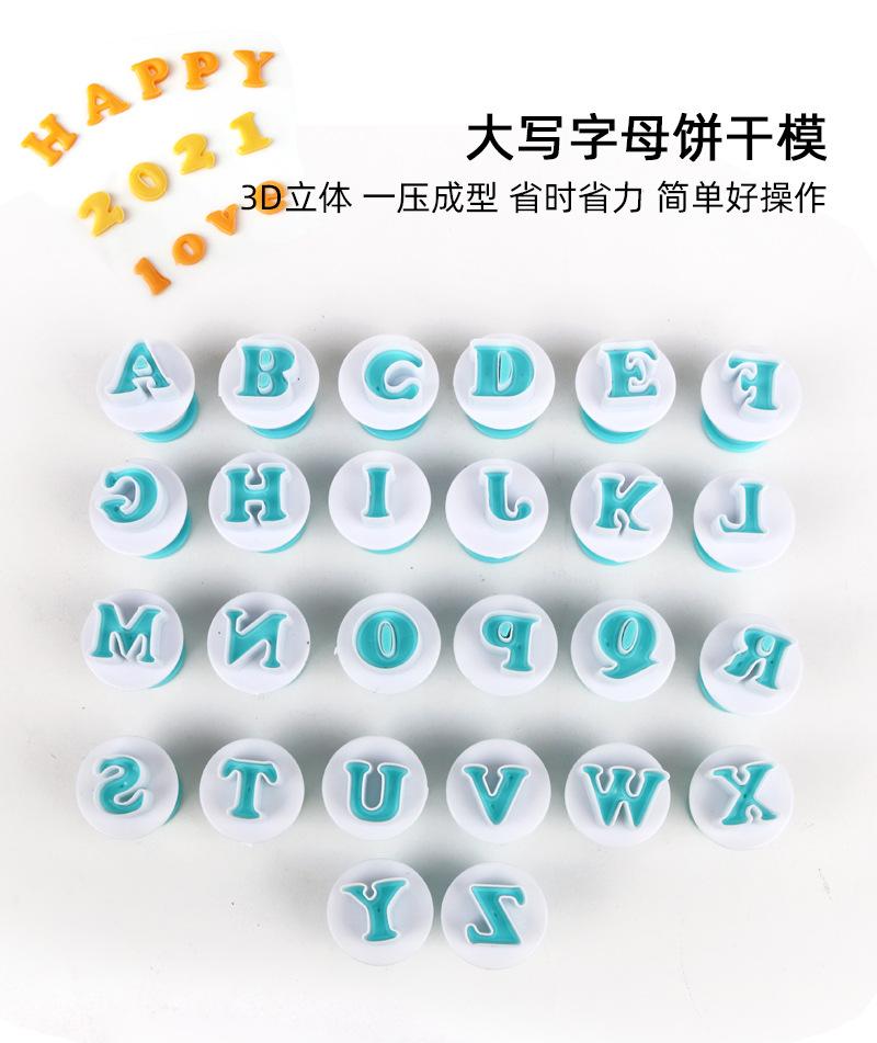 Molde de prensa de resorte para galletas alfanuméricas en mayúsculas y minúsculas, 26 unidades, para imprimir pasteles de azúcar, molde de corte, herramienta para hornear