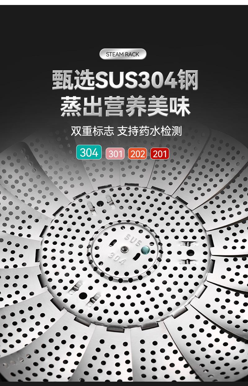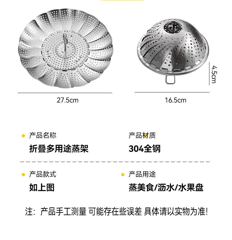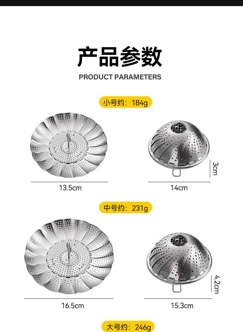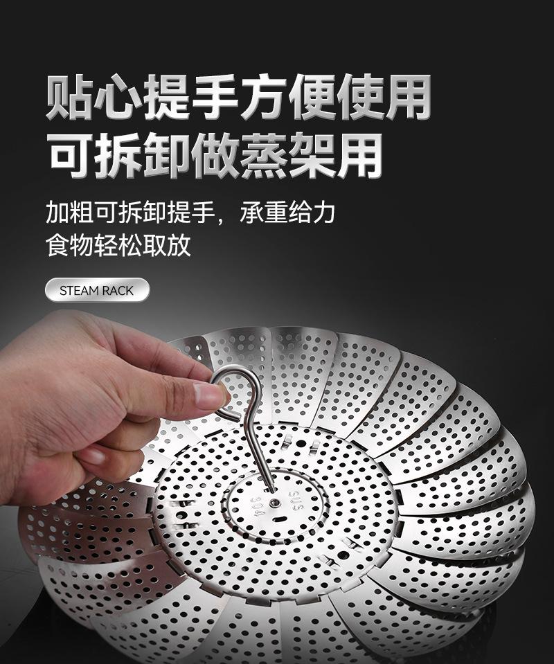 Vaporera plegable de acero inoxidable 304, rejilla vaporera de cocina engrosada, rejilla a prueba de agua, vaporera retráctil multifuncional