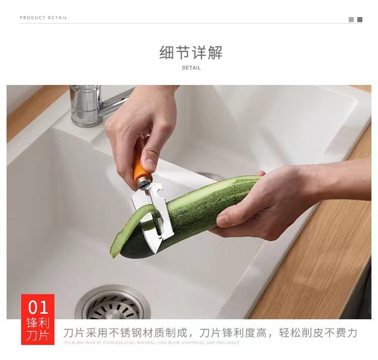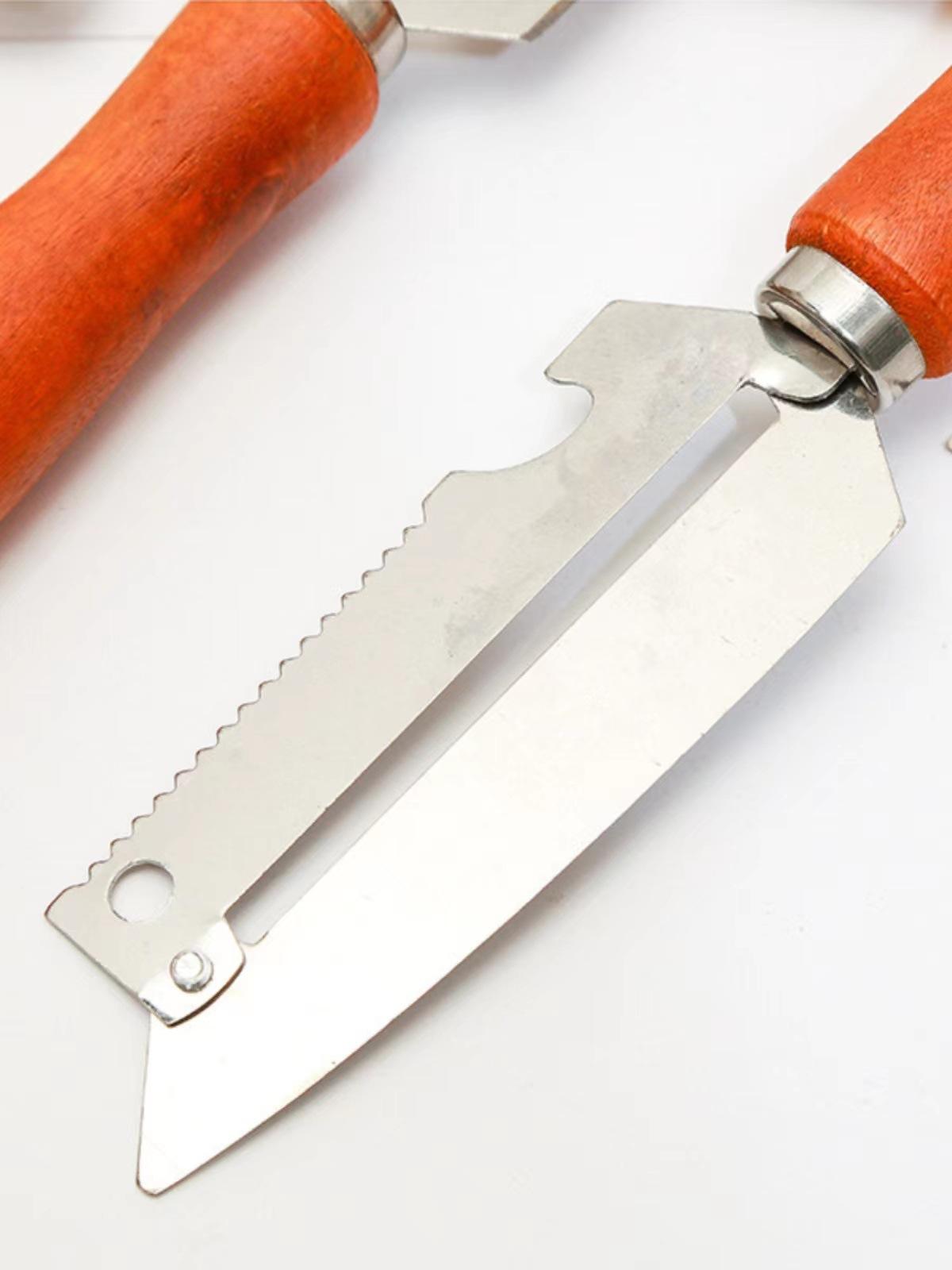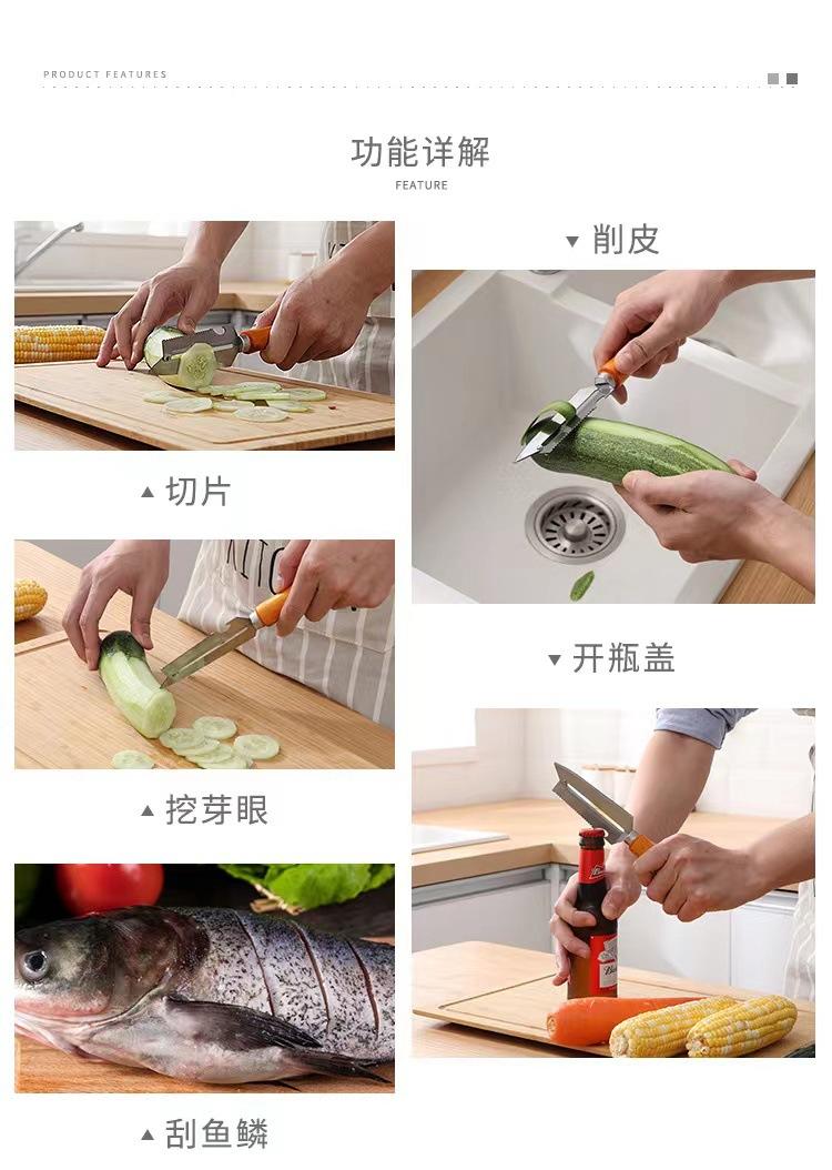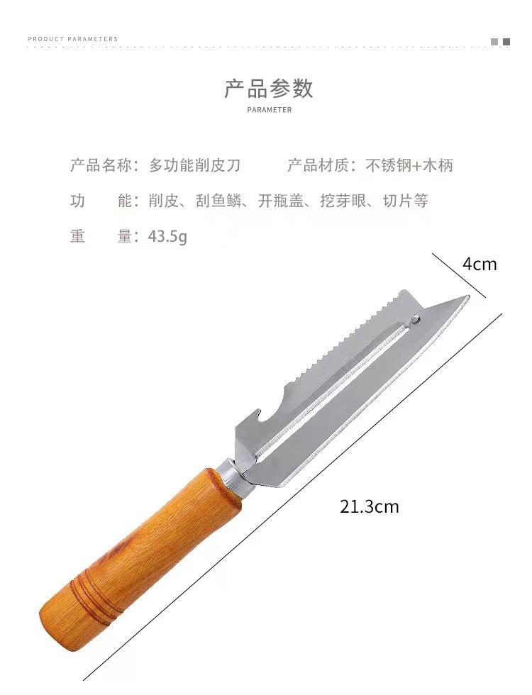 Pelador de manzanas multifuncional de cocina con mango de madera de acero inoxidable de cuatro usos, pelador de frutas, pelador doméstico.
