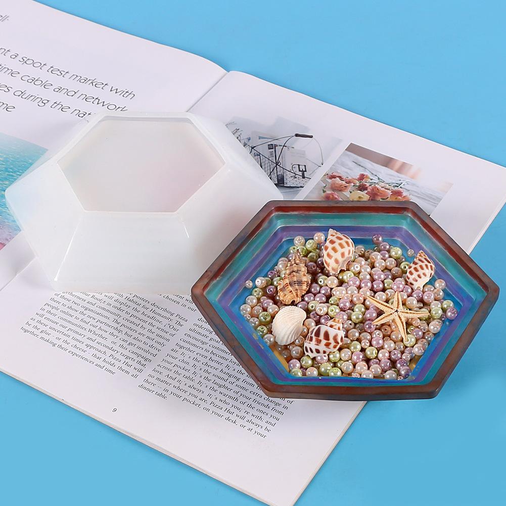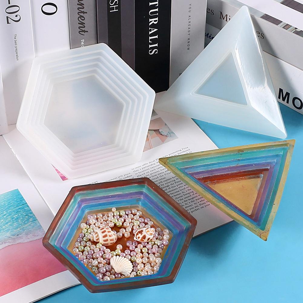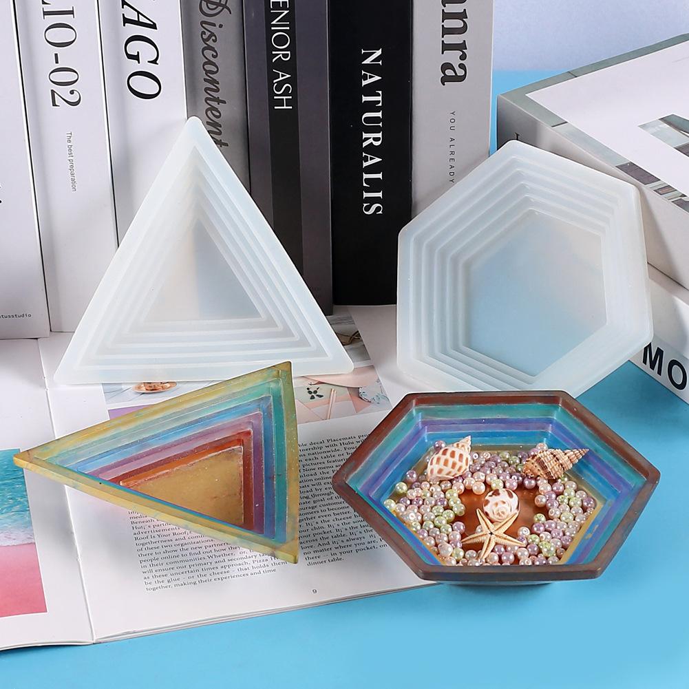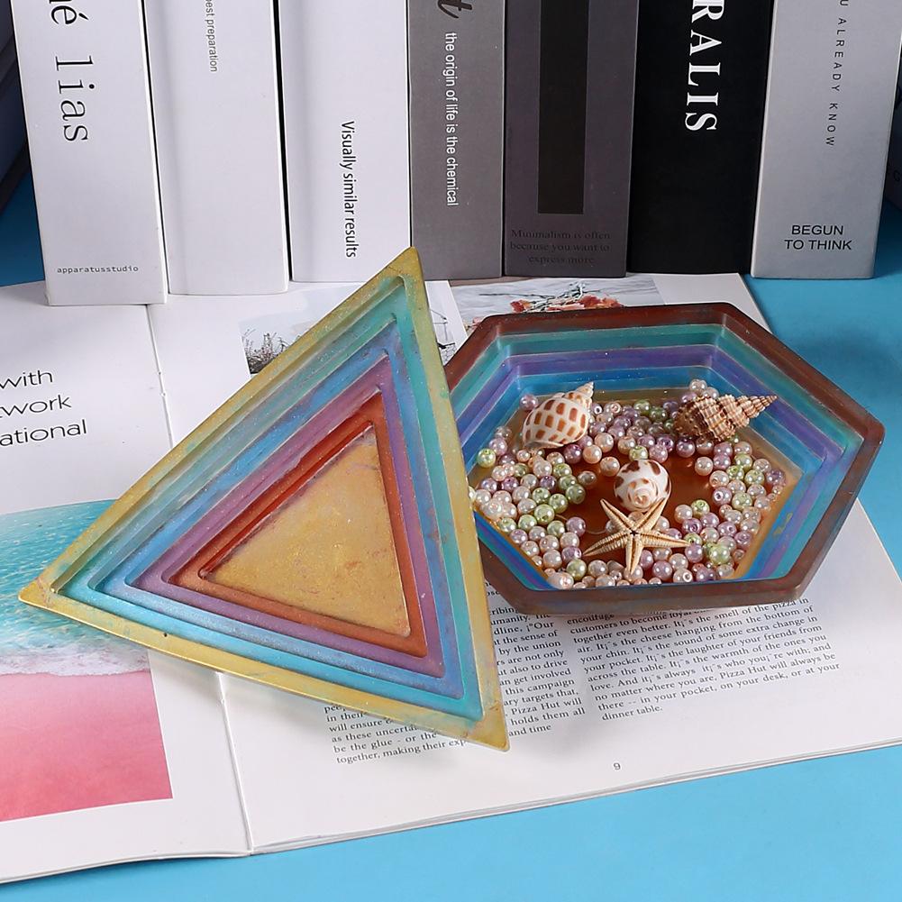 Molde de silicona para bandeja escalonada triangular de seis lados con pegamento de cristal para bricolaje, bandeja para guardar joyas, molde de resina con pegamento de gota