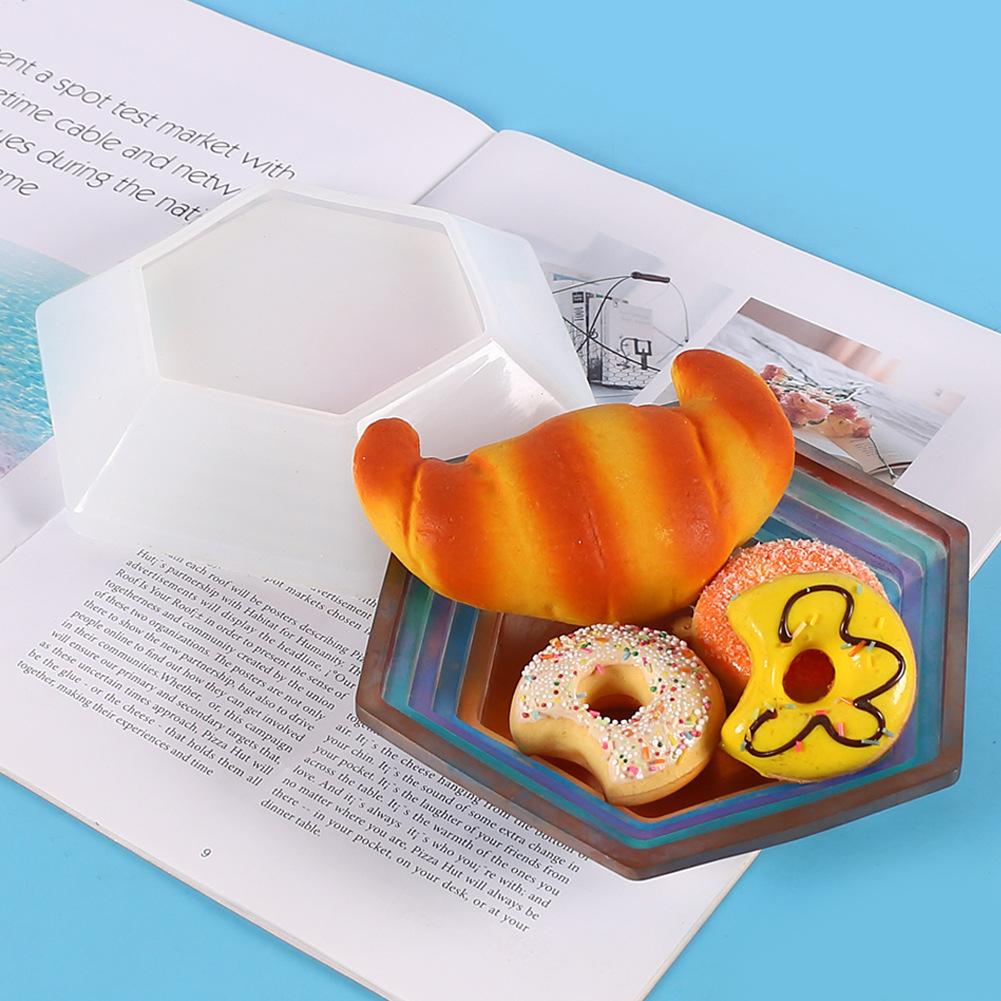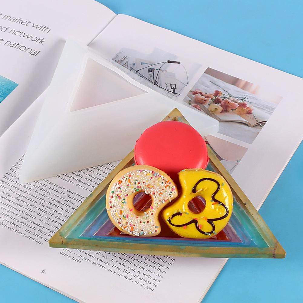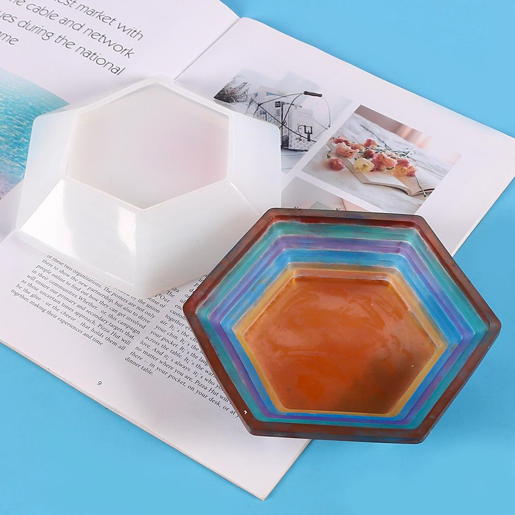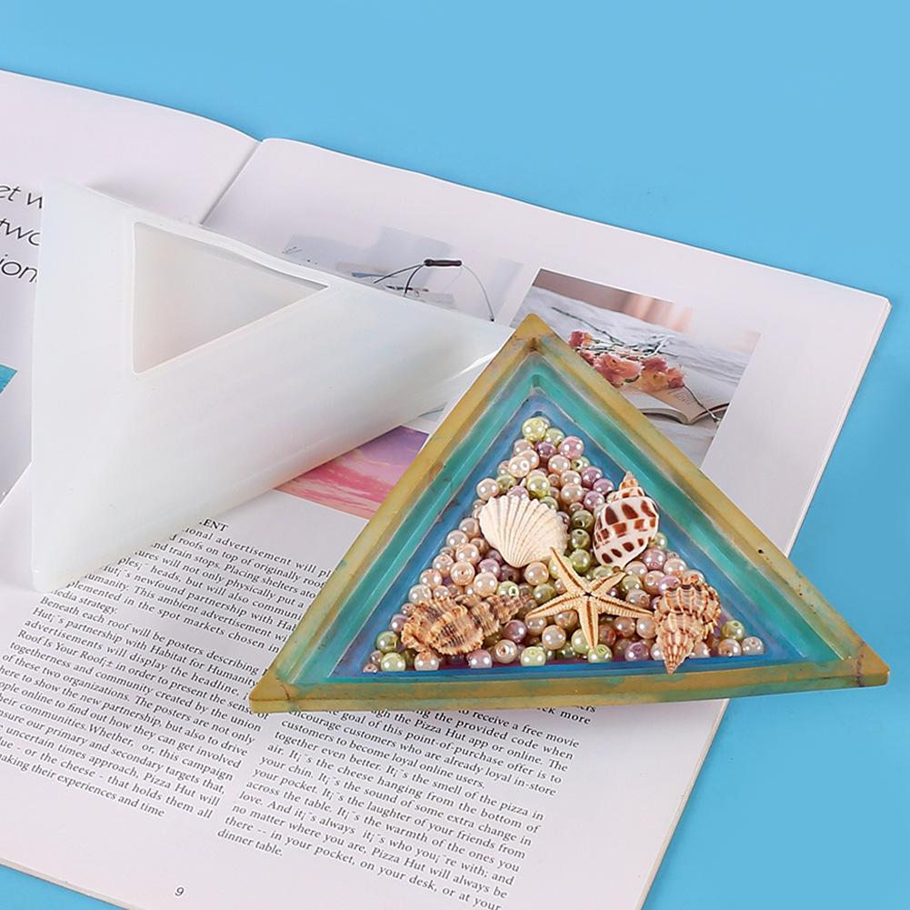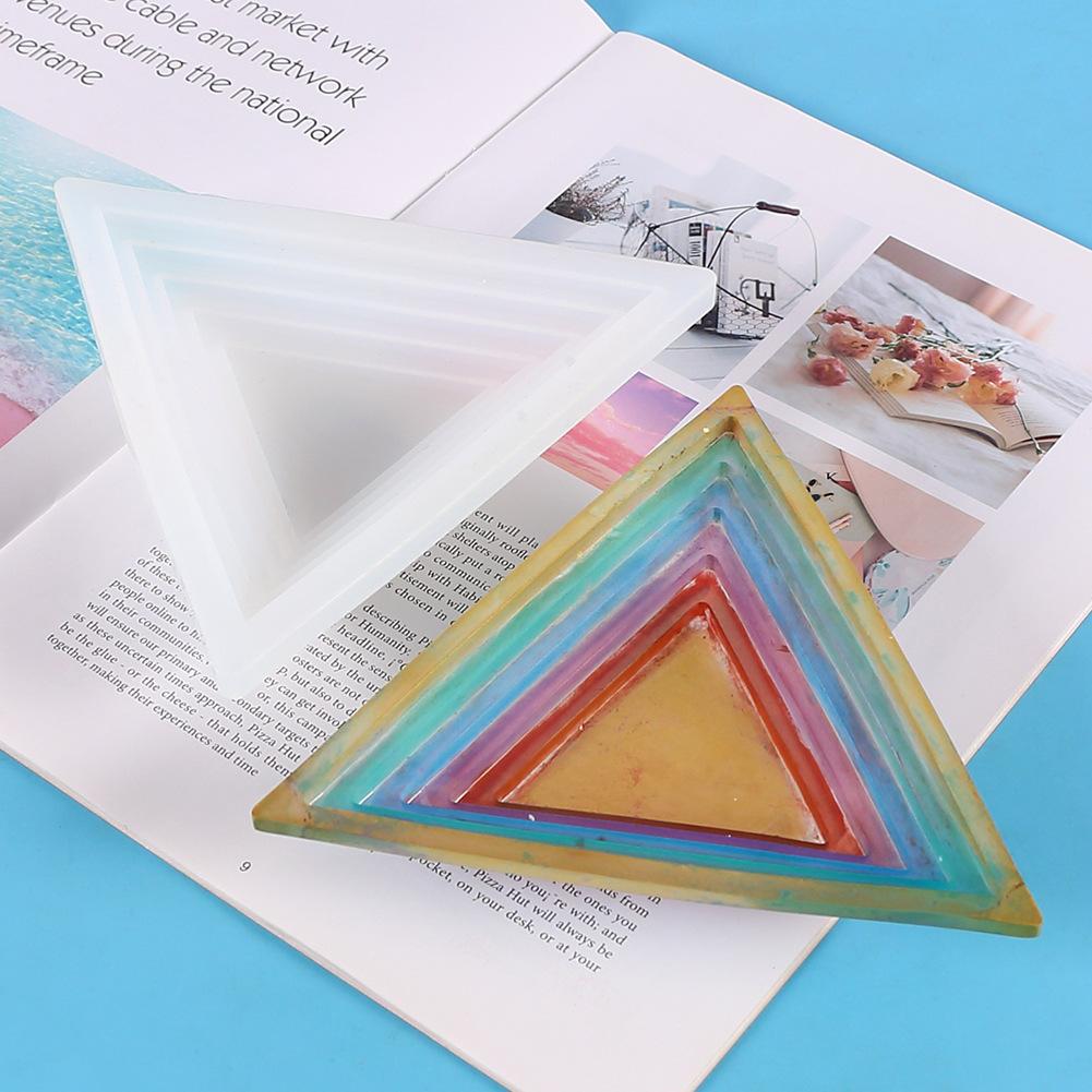 Molde de silicona para bandeja escalonada triangular de seis lados con pegamento de cristal para bricolaje, bandeja para guardar joyas, molde de resina con pegamento de gota