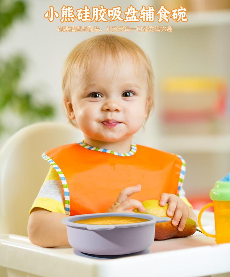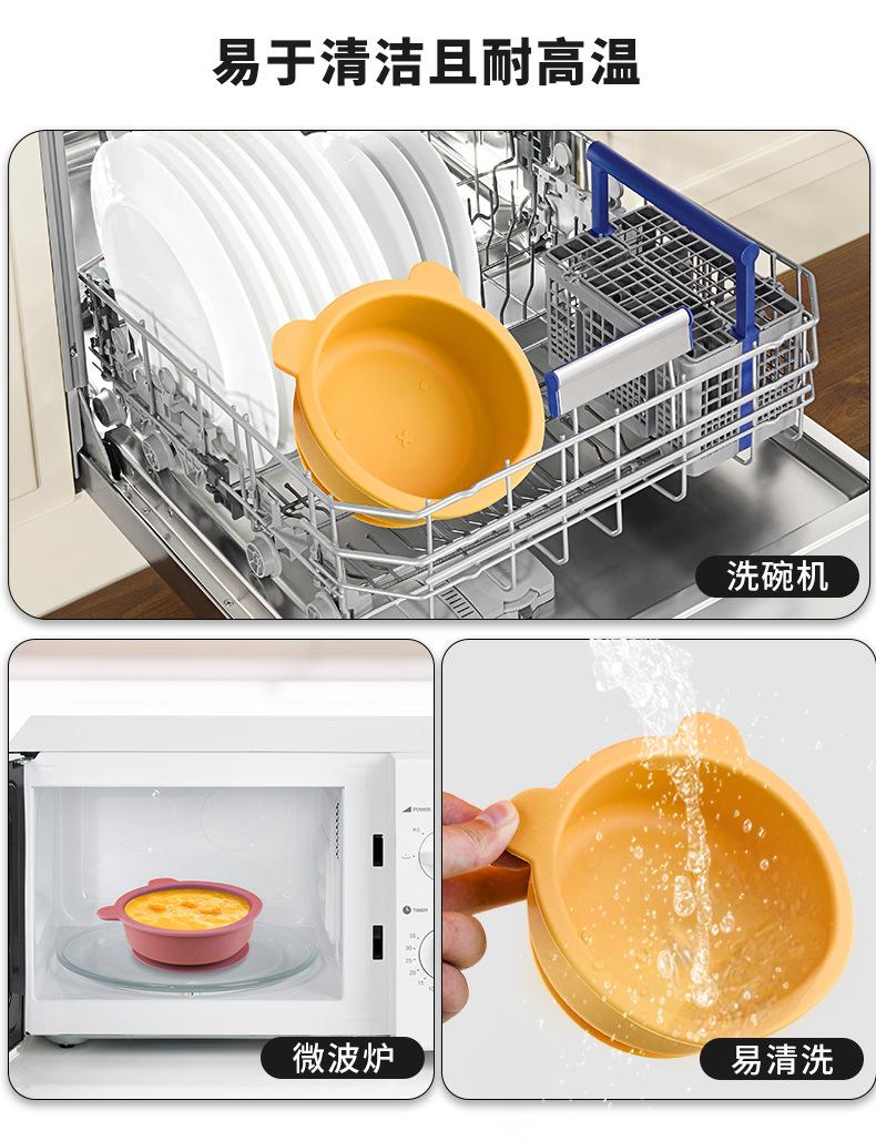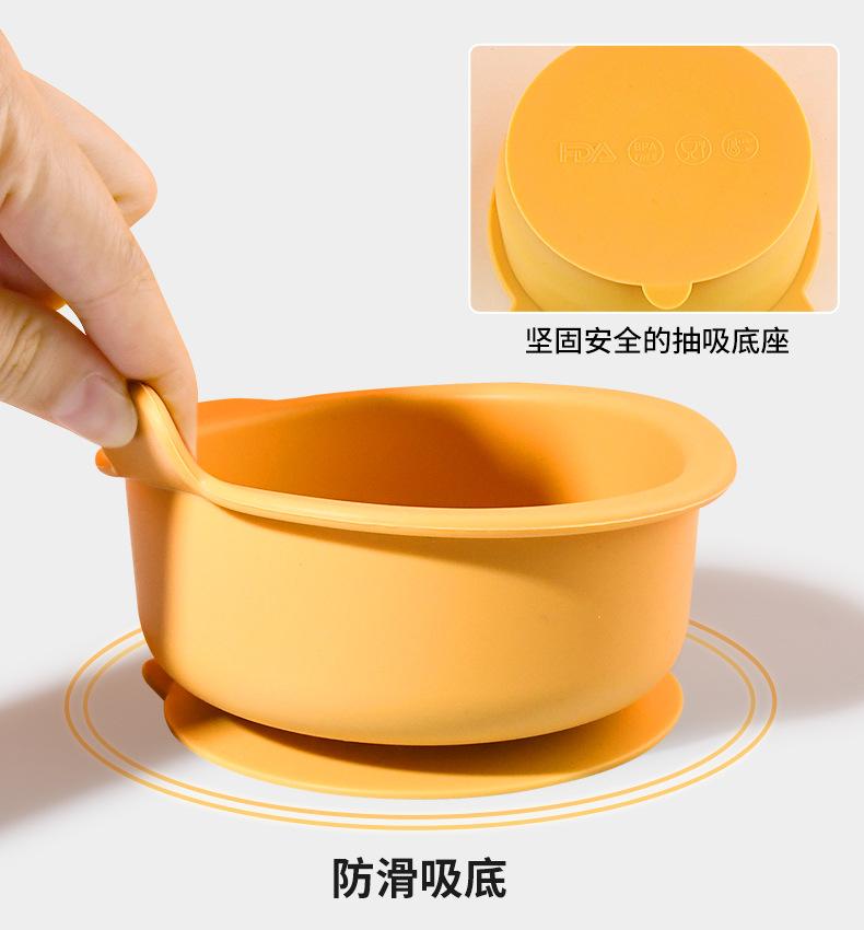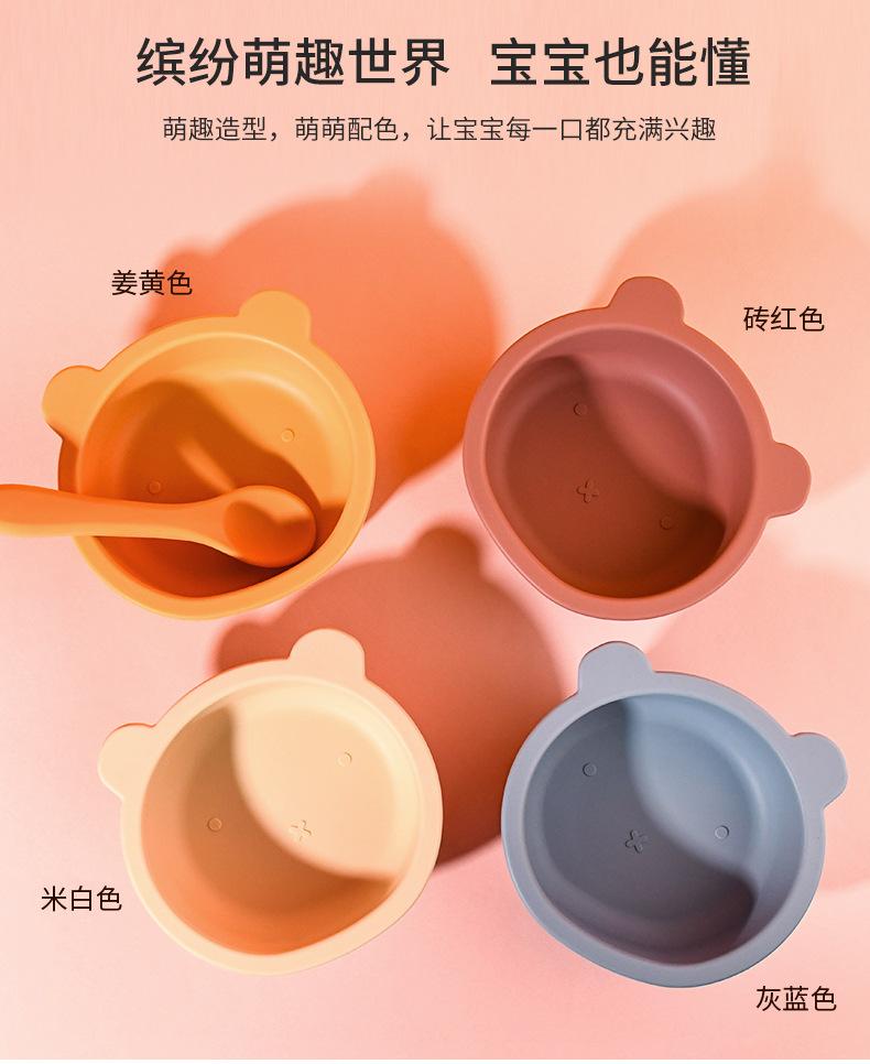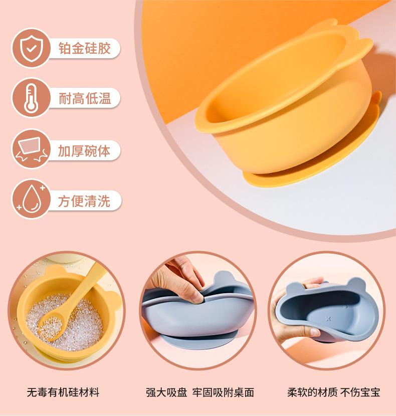 Tazón de silicona para niños de Amazon más vendido, plato integrado de oso de dibujos animados, vajilla para bebés que aprenden a comer con tazón con ventosa