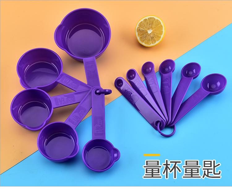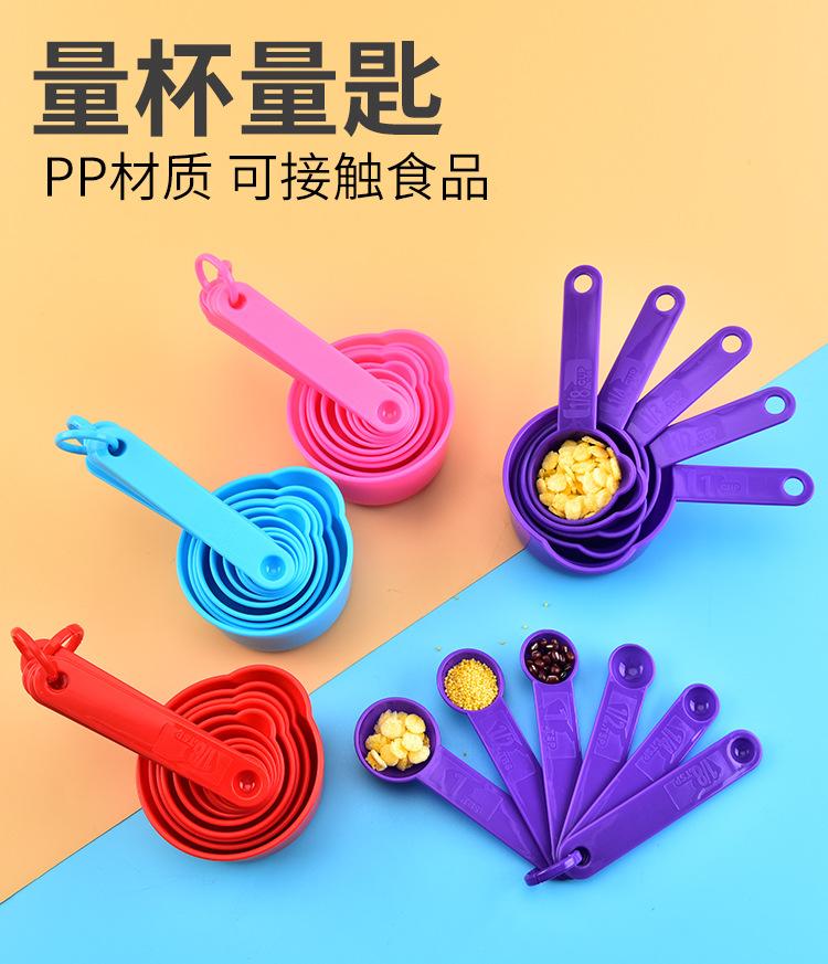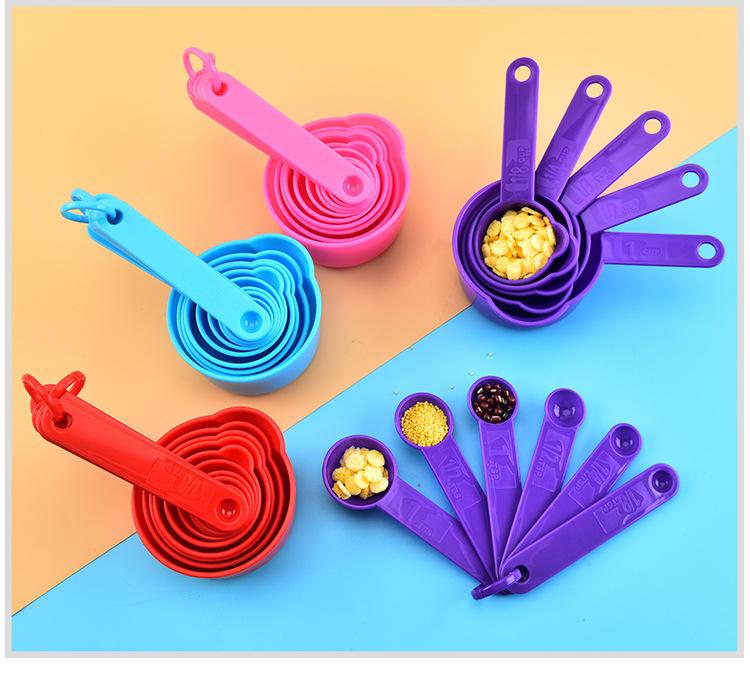Juego de cucharas medidoras para hornear, utensilios de cocina para el hogar, escala de banda de color de plástico, taza medidora, juego de cucharas medidoras