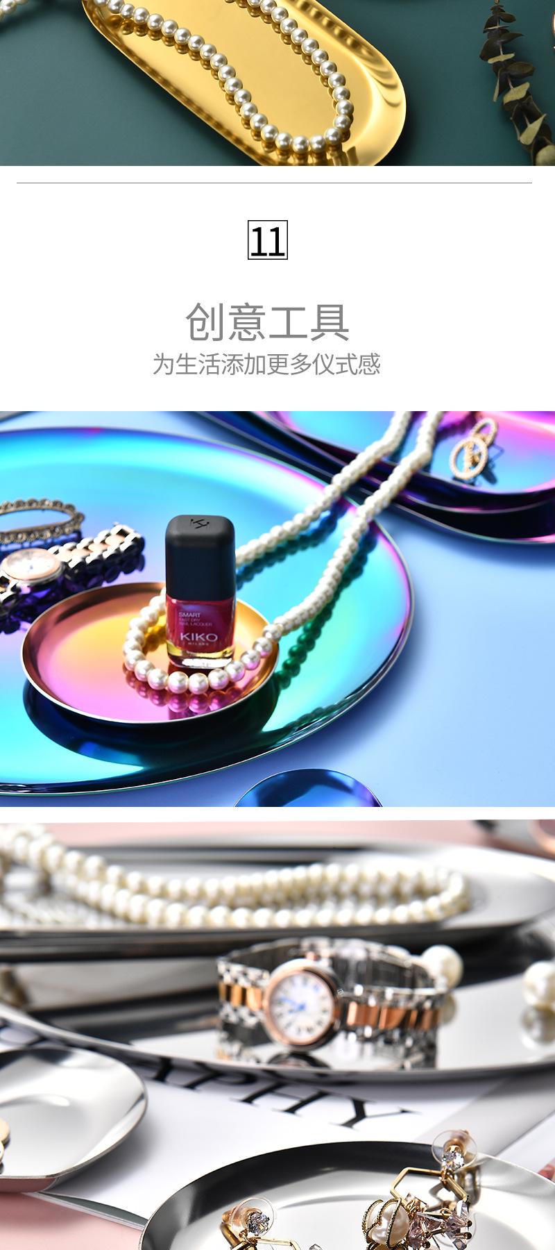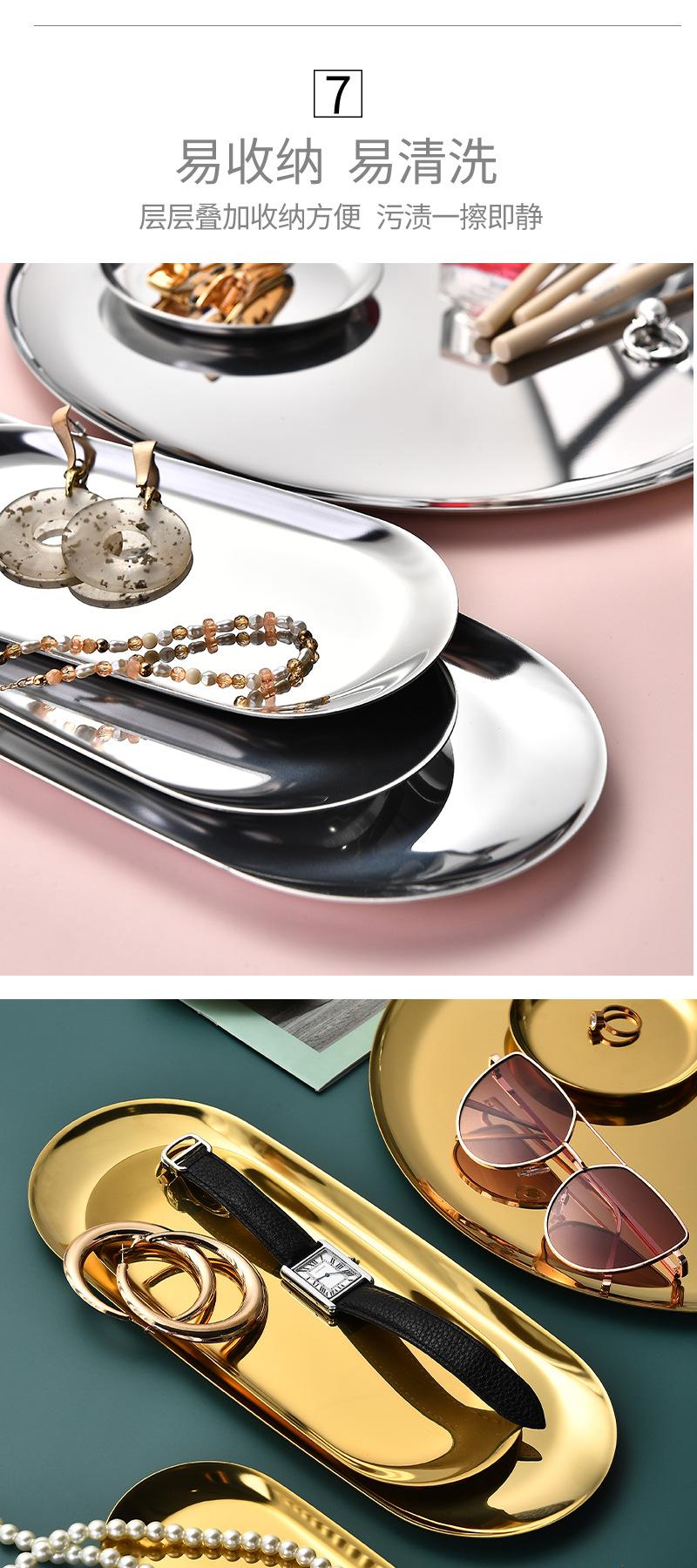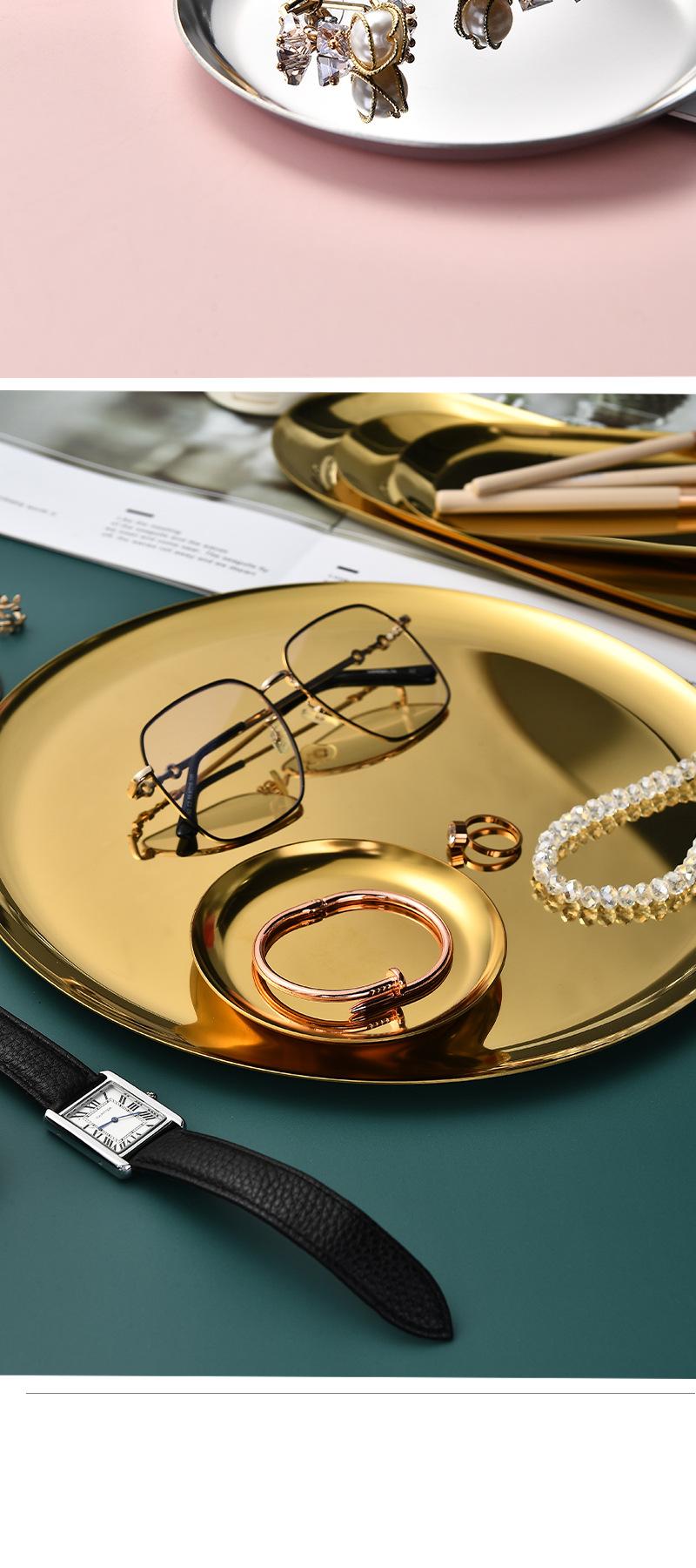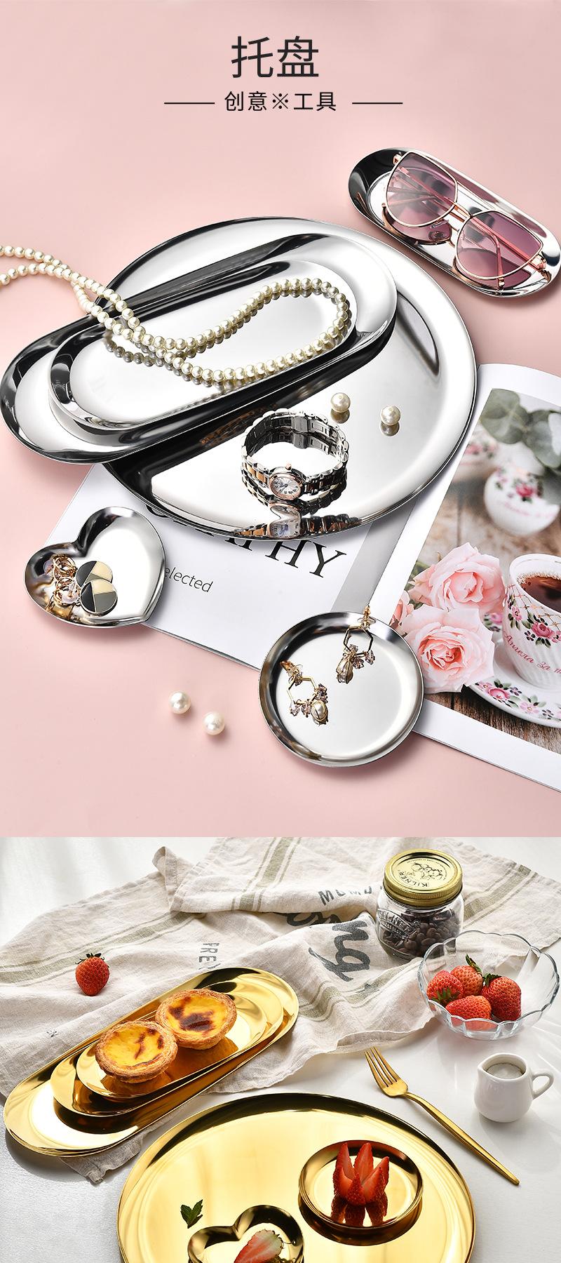 Plato ovalado de acero inoxidable chapado en oro, plato para aperitivos occidentales, plato para barbacoa estilo coreano, bandeja pequeña dorada, plato para guardar joyas