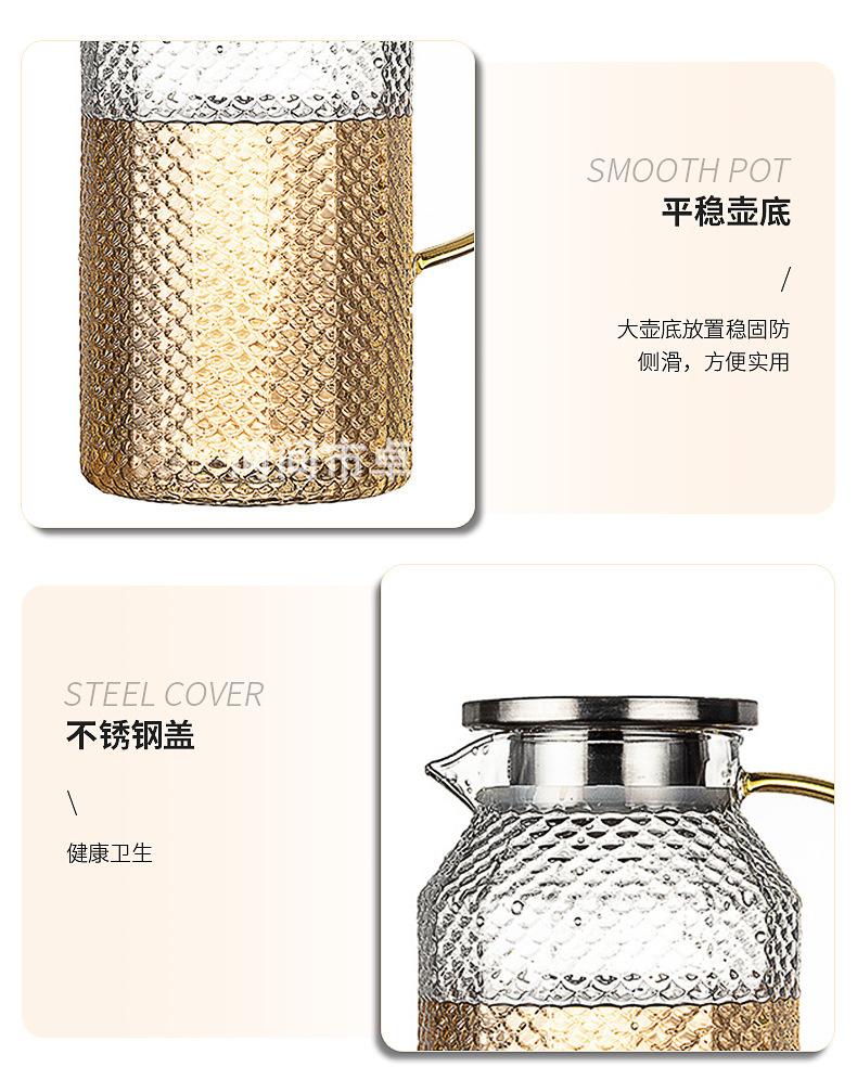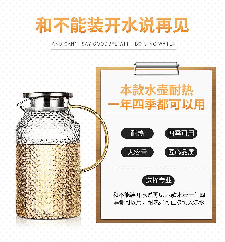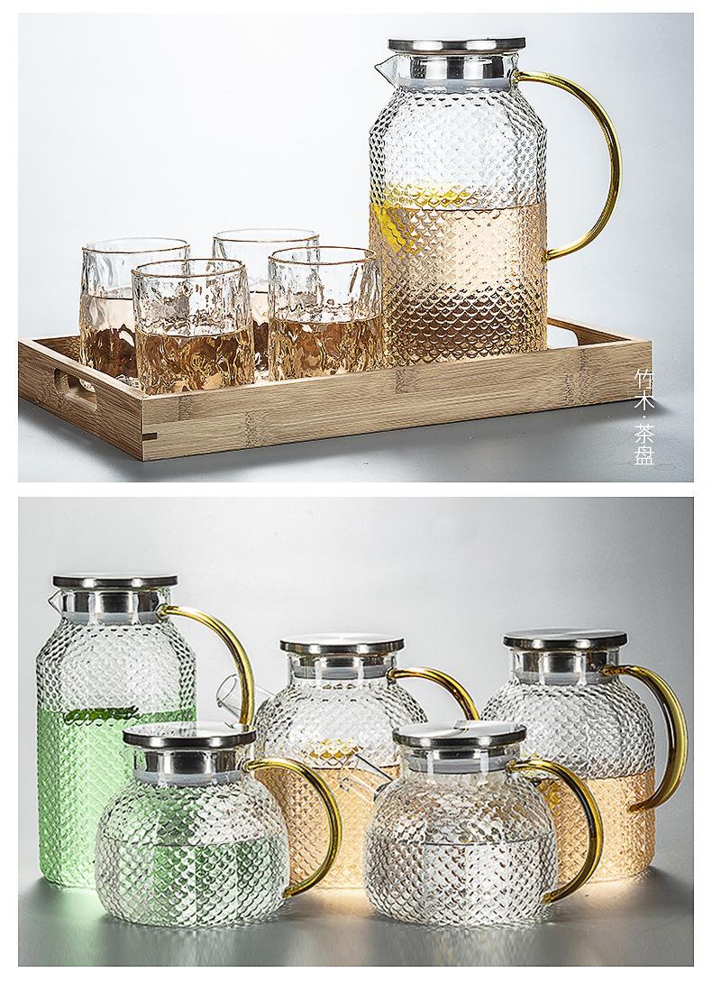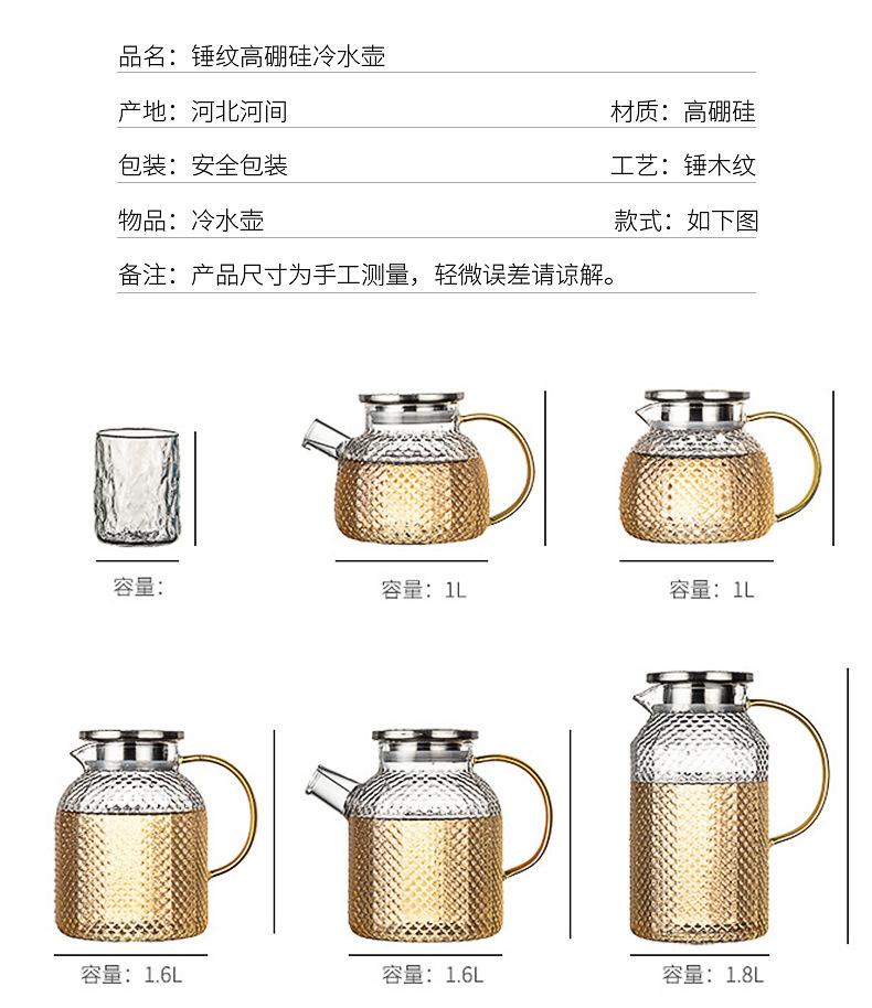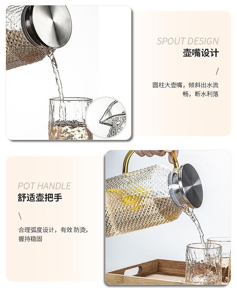 Botella de agua fría de borosilicato martillado de gran capacidad, botella de agua fría de vidrio para jugo, botella de agua fría con asa, hervidor resistente a altas temperaturas
