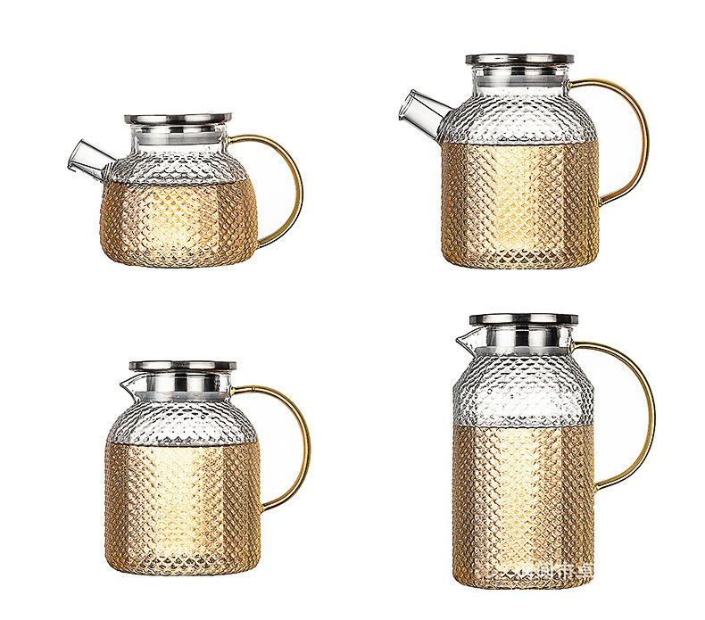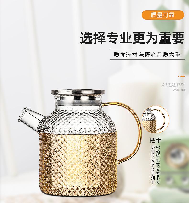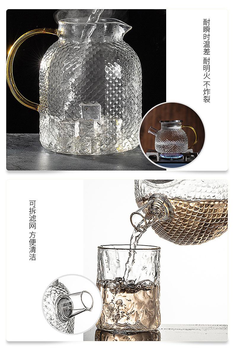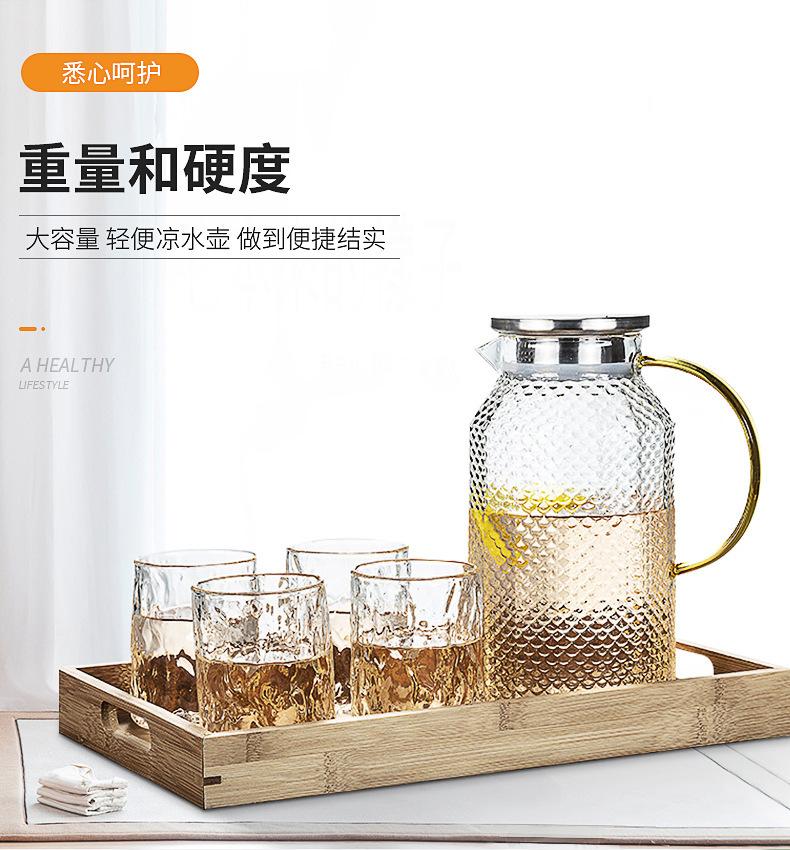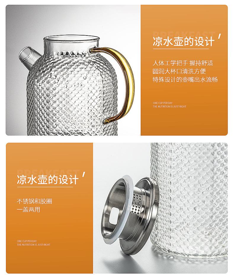 Botella de agua fría de borosilicato martillado de gran capacidad, botella de agua fría de vidrio para jugo, botella de agua fría con asa, hervidor resistente a altas temperaturas