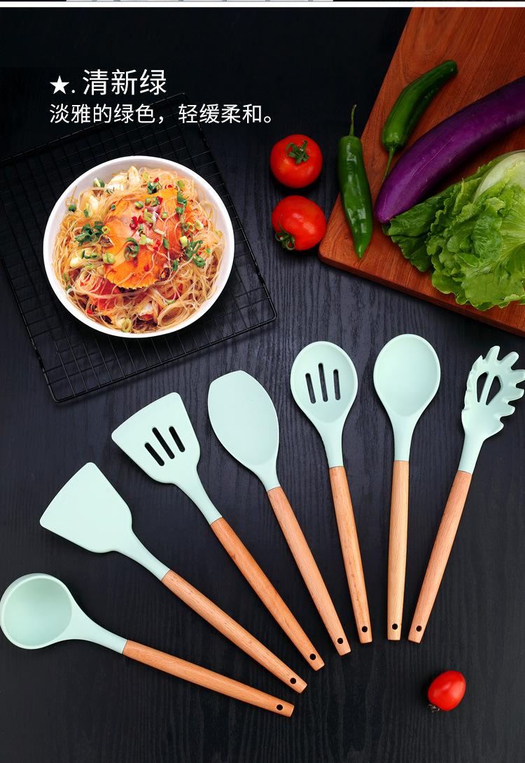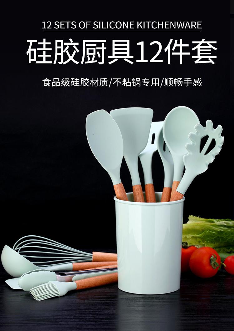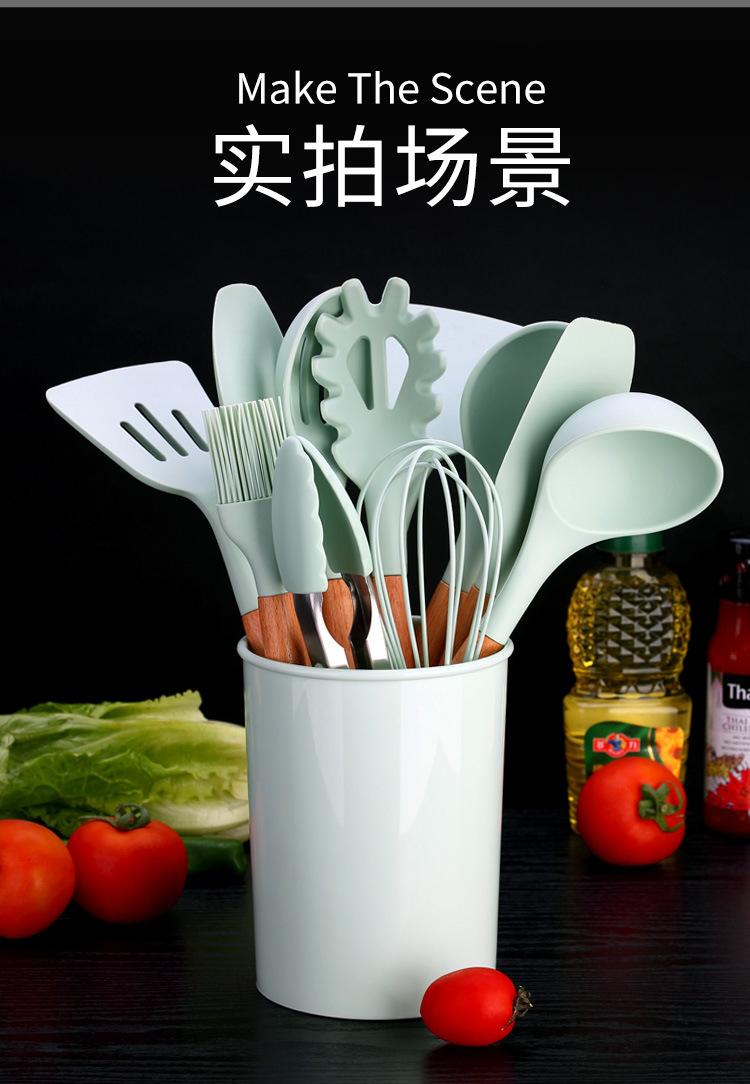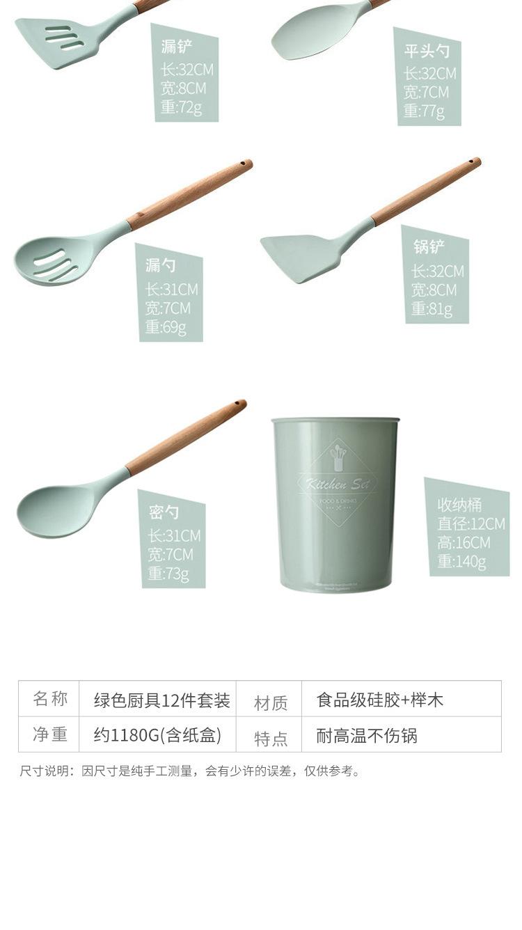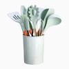 Espátula de silicona con mango de madera de 12 piezas, color verde fresco, para sopa, utensilios de cocina, tubo de almacenamiento