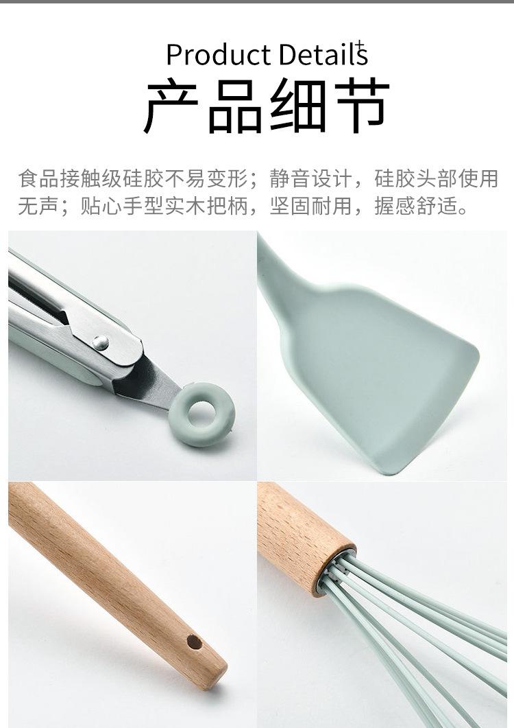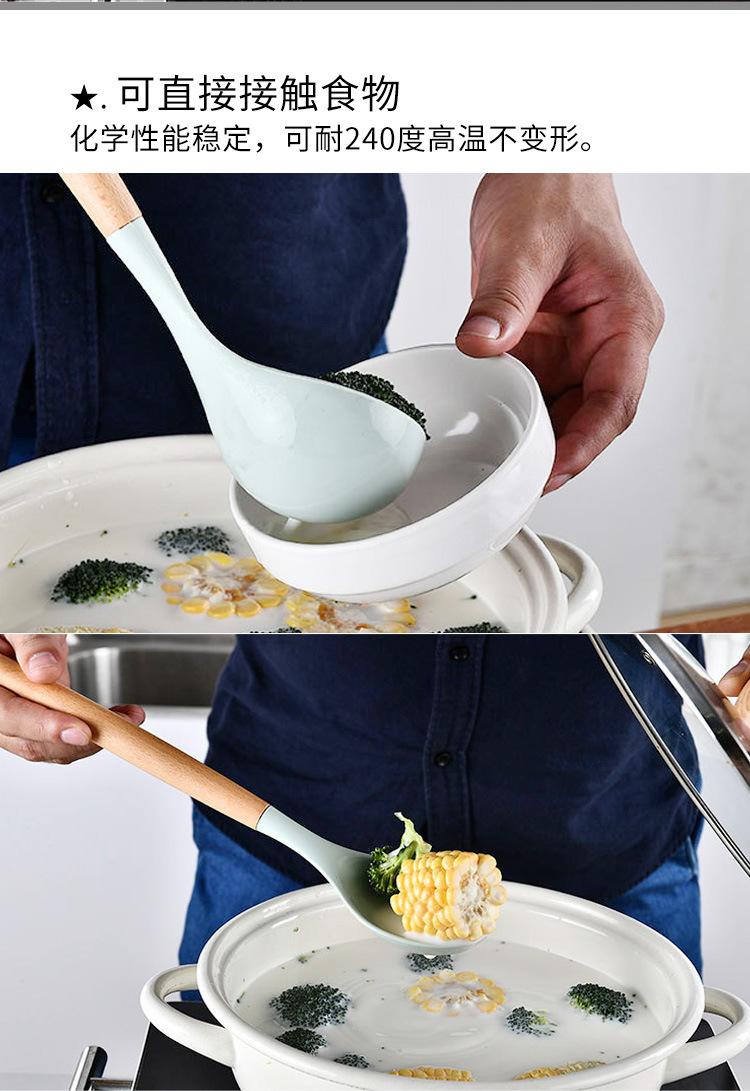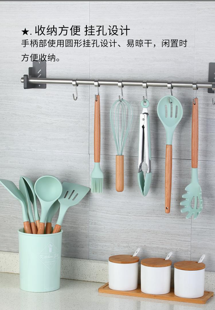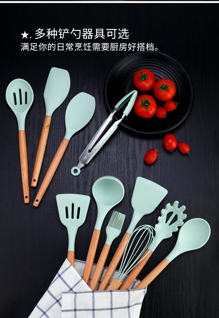 Espátula de silicona con mango de madera de 12 piezas, color verde fresco, para sopa, utensilios de cocina, tubo de almacenamiento